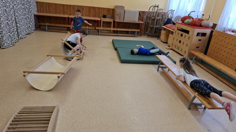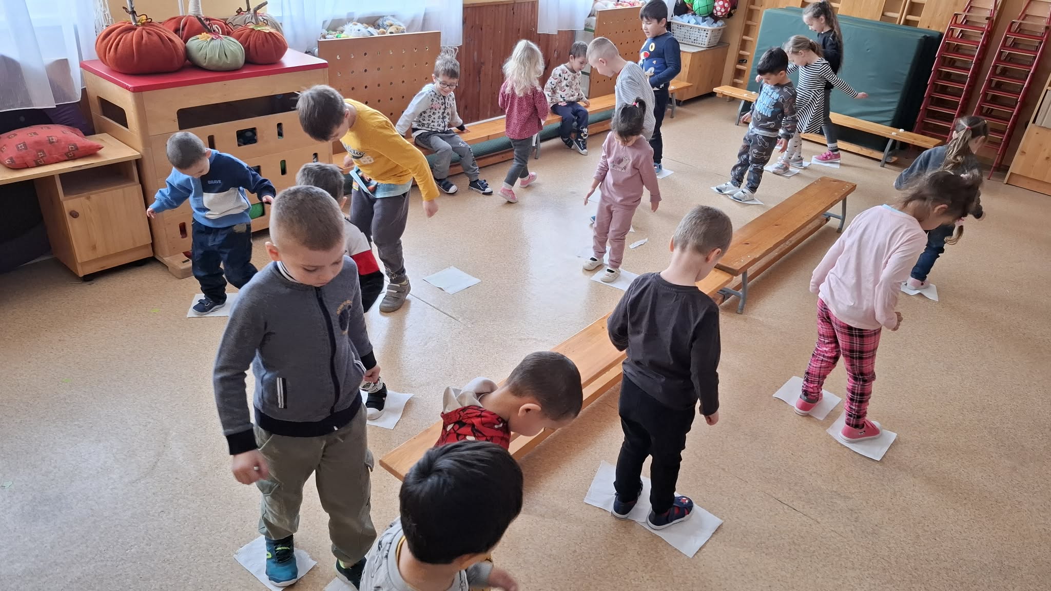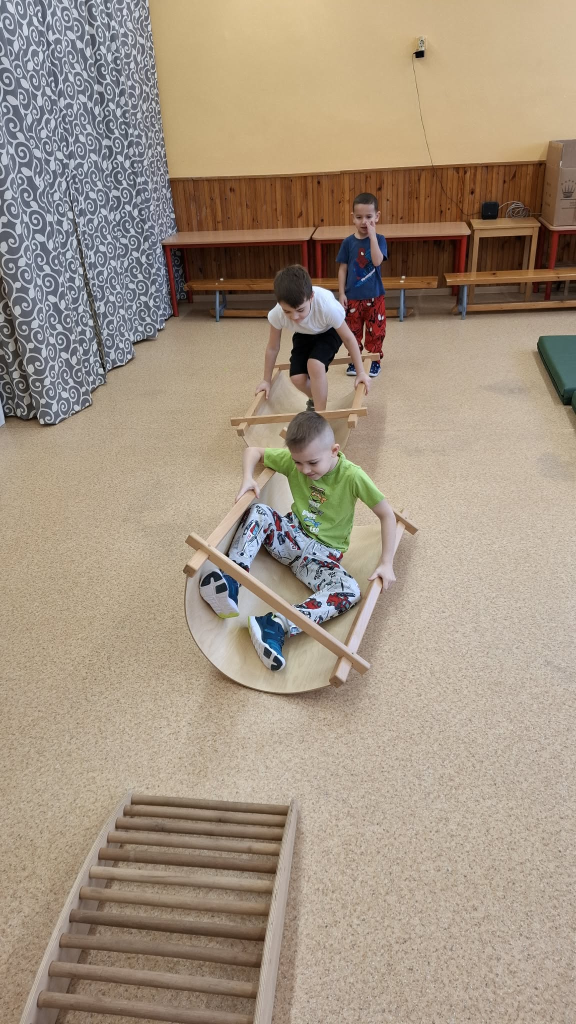 A téli sportok ideje is itt van, ezért sokféle sportággal megismerkedtek, és amit csak tudtunk, el is játszottunk a tornaszobánkban. Volt ott szánkózás, síelés és jégtánc.