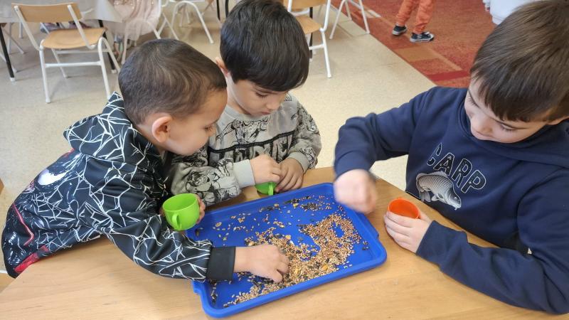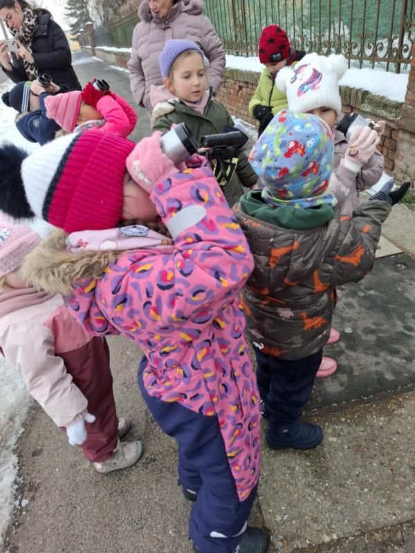 Megismerkedtek a gyermekek az itthon telelő madarakkal, az erdei állatokkal. Azok jellemző tulajdonságaival, meghallgattuk a hangjukat, megtudták, hogy mit esznek, hogyan kell gondoskodni bizonyos állatokról. Élményszerző séták alkalmával baglyokat figyeltünk meg a város fenyőfáin, de a széncinege, gerle, verebek nagyobb csapata is megfigyelhető volt. Távcsöveink közelebb hozták őket hozzánk. Az udvaron lévő madáretetőket feltöltöttük madáreleséggel, almával, szalonnával, az ablakon keresztül pedig jól szemmel tudjuk tartani, ha valaki éppen csipeget. Kölest, napraforgót, búzát válogattak az ügyes óvodások, és kis kezükkel ők is készítettek madáretetőket.