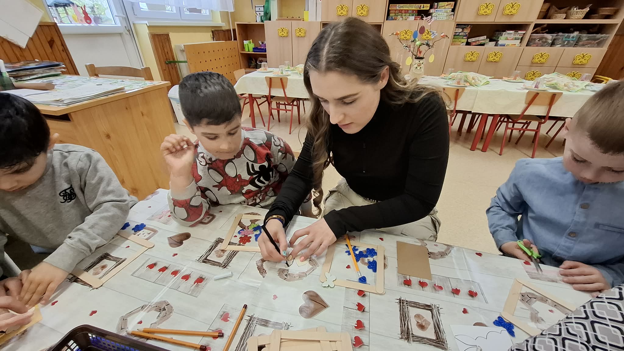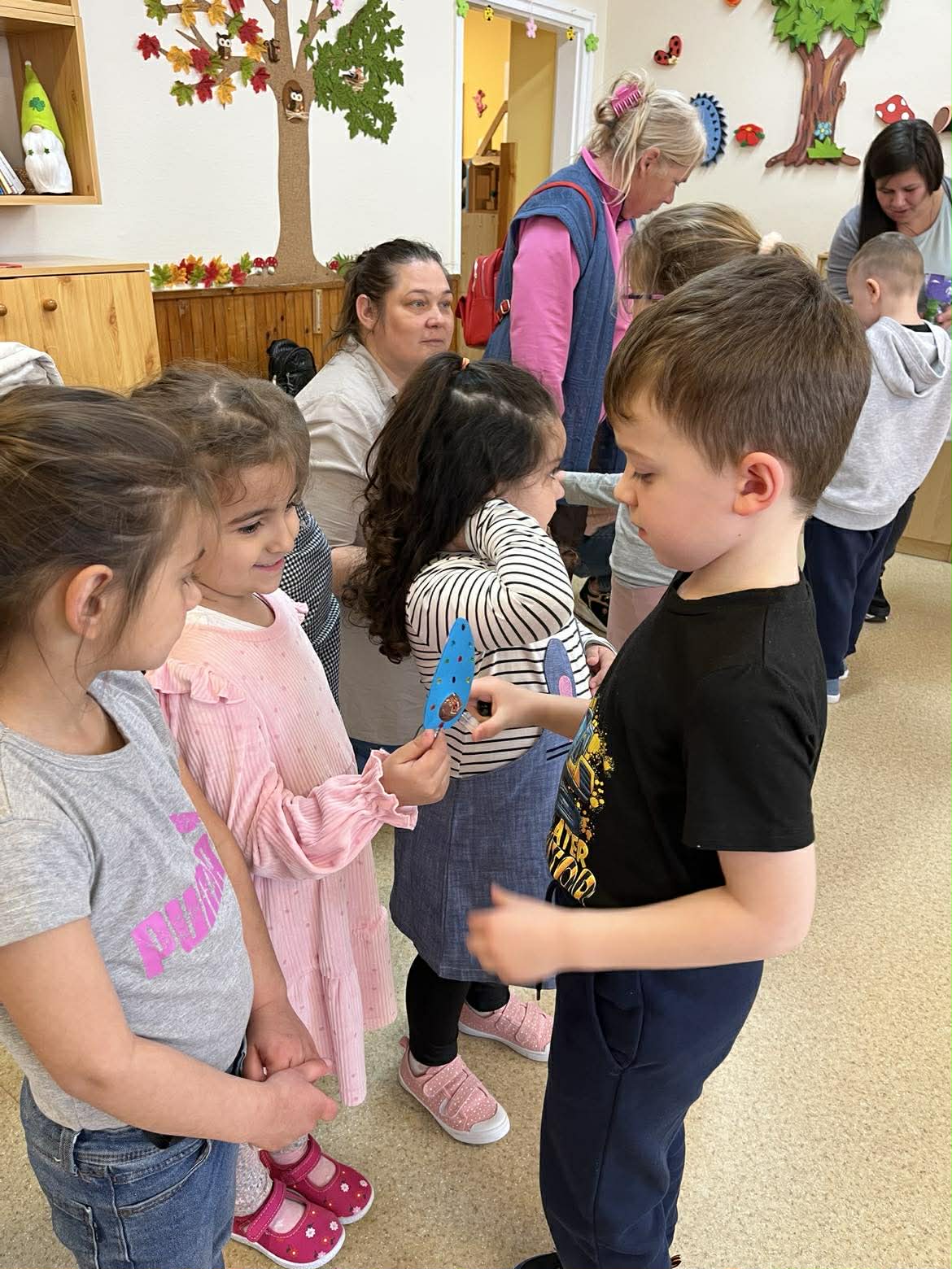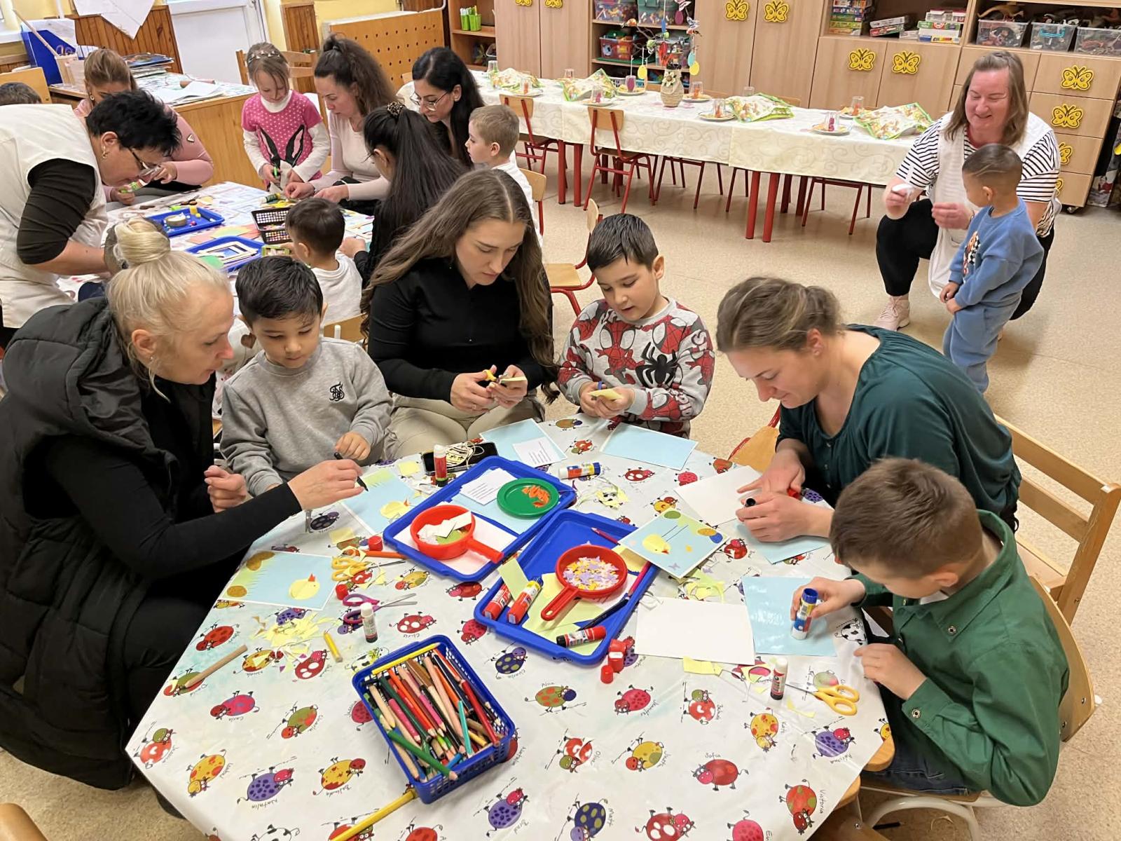 A húsvéti ünnepekre, ráhangolódó, barkácsolós nyílt nappal készültünk. Szépen megterített asztal, finomságok, különböző, húsvétot megidéző, kézműves tevékenységek várták a vendégeket. Jó hangulatban telt a program, a szülők aktív közreműködésével.