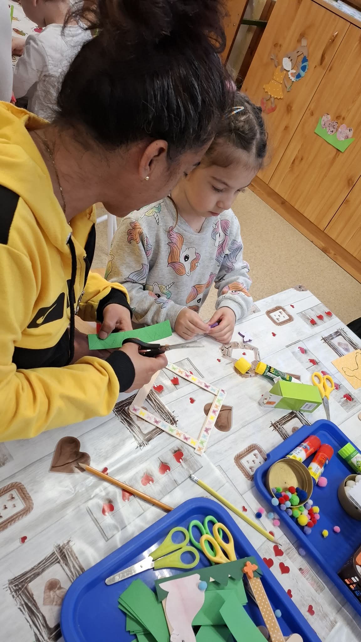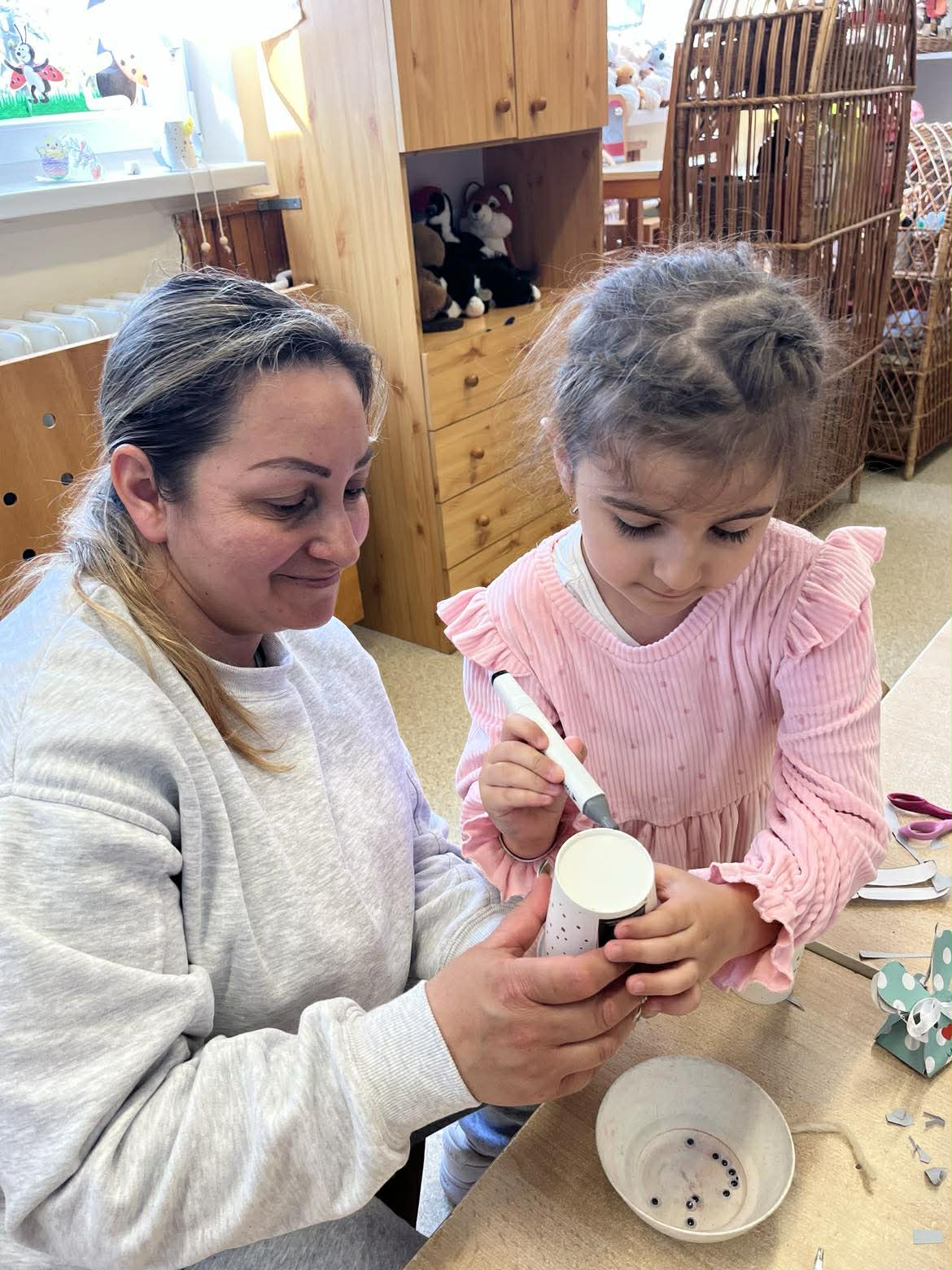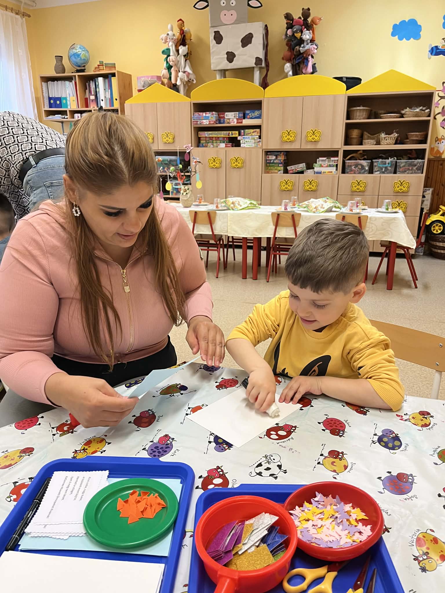 A húsvéti ünnepekre, ráhangolódó, barkácsolós nyílt nappal készültünk. Szépen megterített asztal, finomságok, különböző, húsvétot megidéző, kézműves tevékenységek várták a vendégeket. Jó hangulatban telt a program, a szülők aktív közreműködésével.