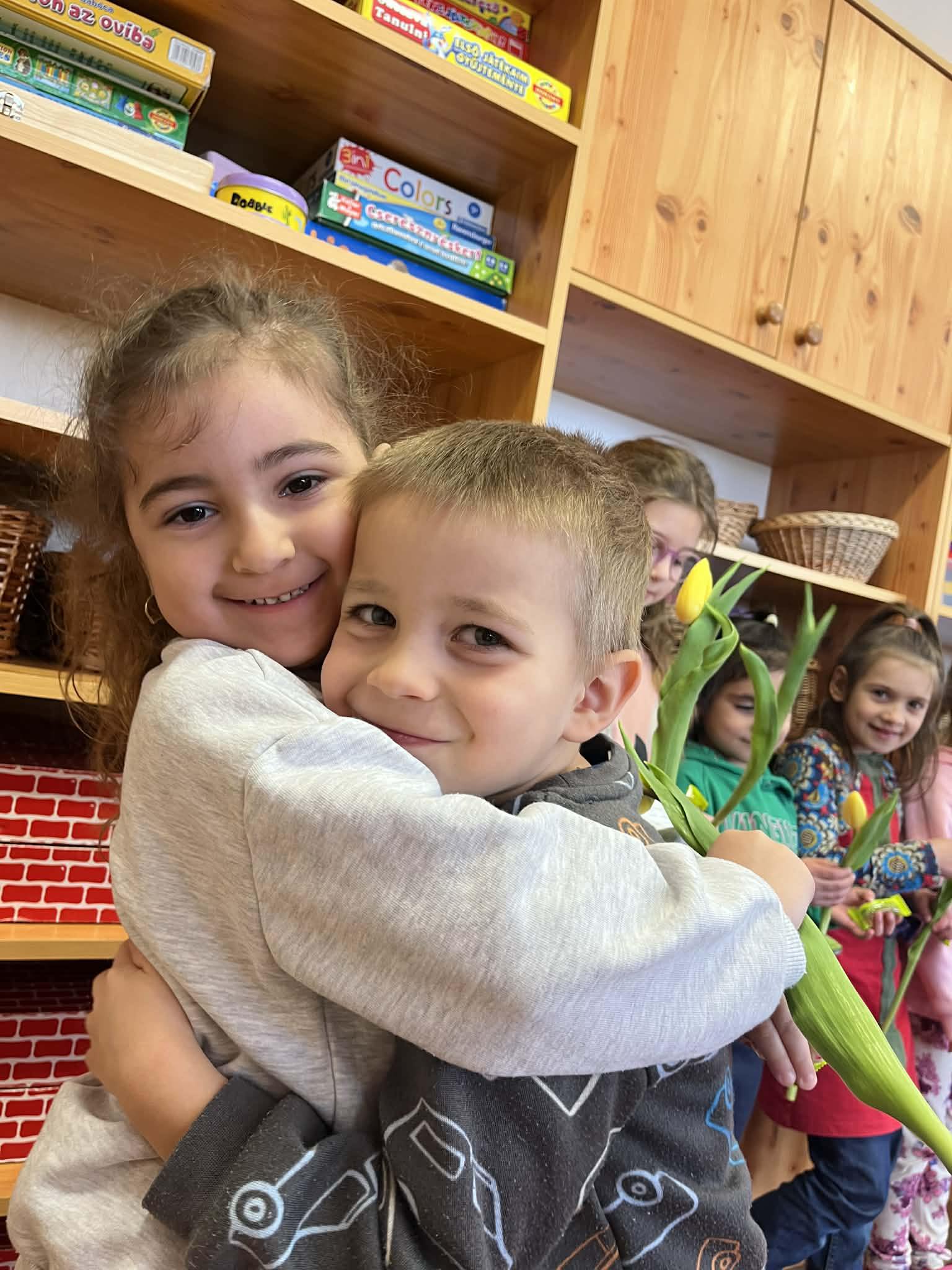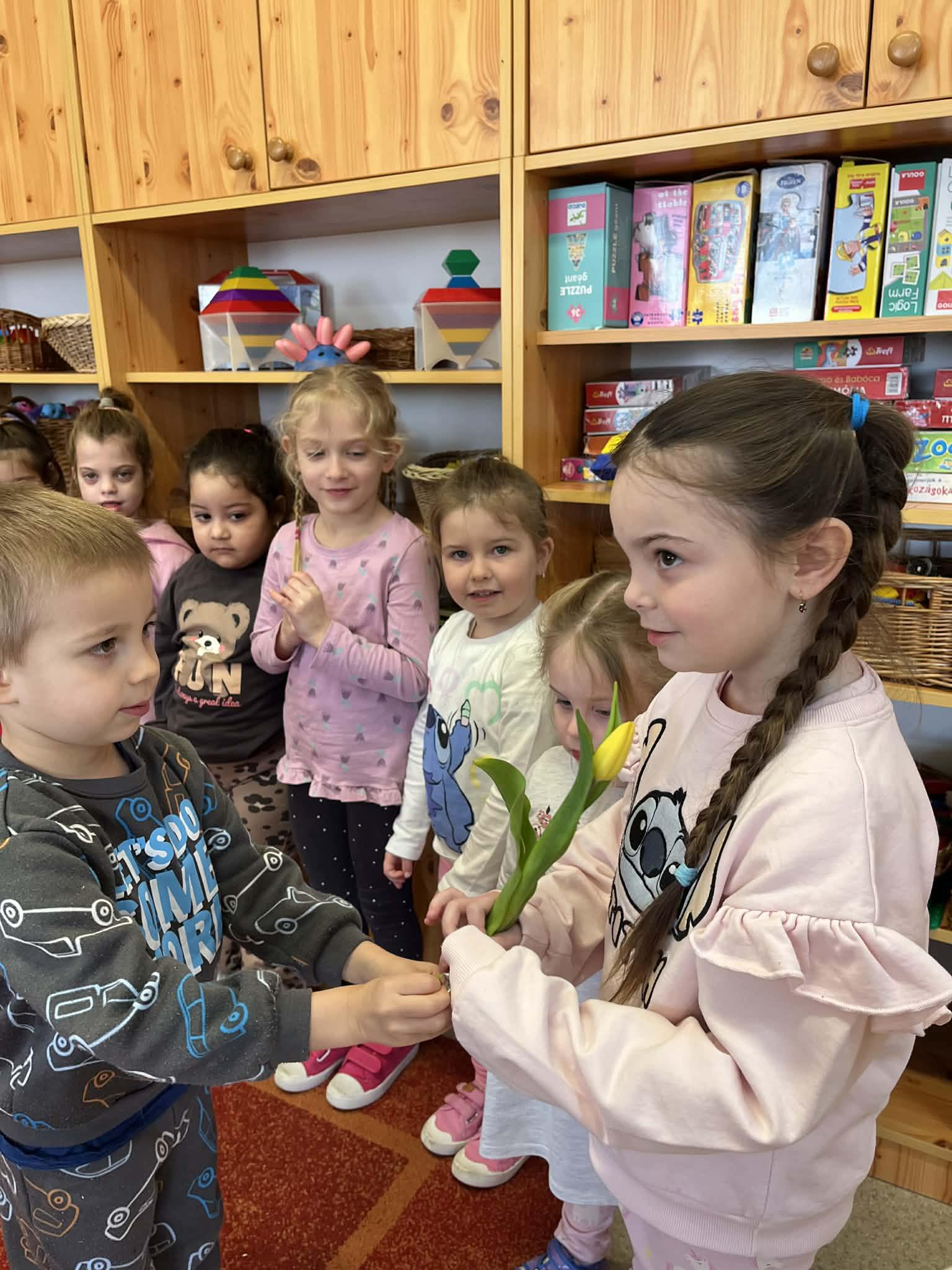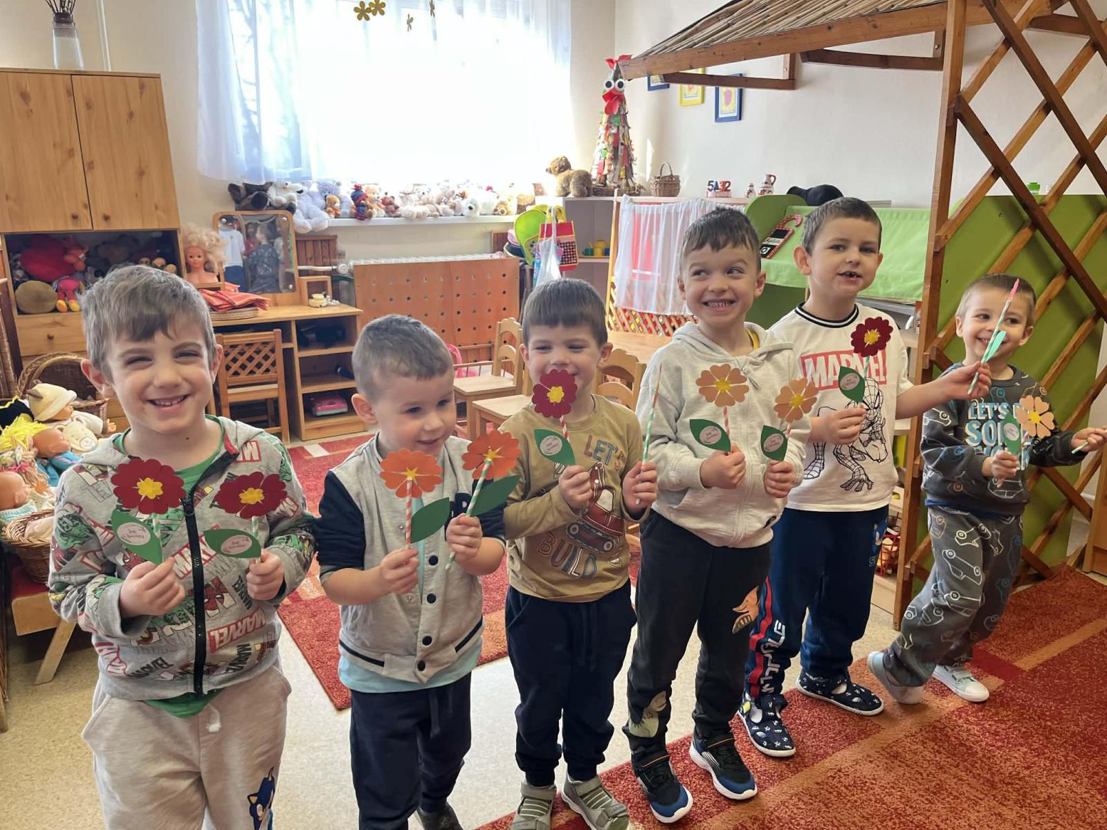 Március a tavasz első hónapja. A virágok a kertekben napról-napra színesebbek, nyiladoznak, illatoznak. Az igazihoz nagyon hasonló kis virágcsokrot készítettek nőnap alkalmából a fiúk a lányoknak, és természetesen az anyukákról sem feledkeztek meg.