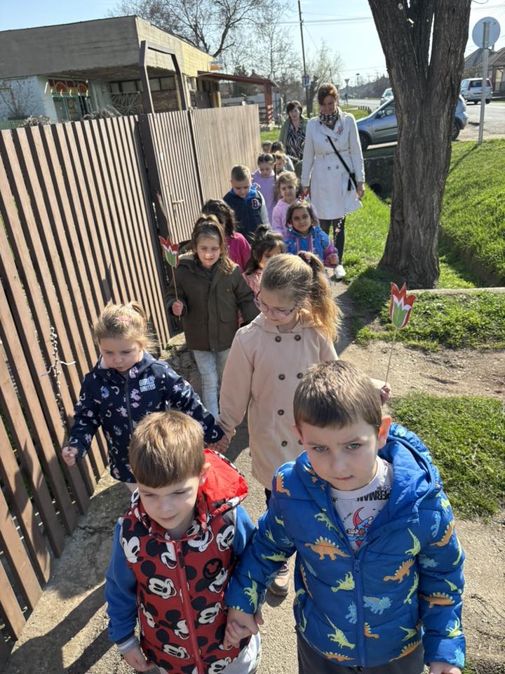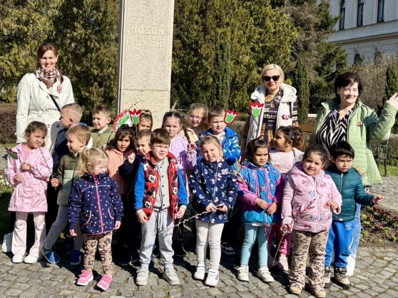 Idén is megemlékeztünk az 1848-49-es szabadságharcban elesettekről. Elsétáltunk az emlékműhöz, vittünk magunkkal nemzeti színű jelképeket- zászló, virág- és büszkén viseltük a nagycsoportosok által varrott kokárdát. Az óvodában megírtuk a 12 pontunkat, amit aztán kitűztünk a faliújságunk falára.