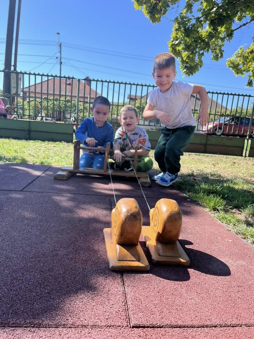 Újra elérkezett a szeptember. A gólyák, fecskék elrepültek, a gyermekek meg visszajöttek az óvodába. A visszaszokatás időszakában a gyermekek megint birtokukba vehették az óvoda játékait, mi pedig újra magunkhoz ölelhettük őket. Családlátogatások alkalmával a legkisebbeket is megismertük, így amikor óvodába jöttek, ismerősökként fogadtuk a kicsiket. A befogadási időszak jelentős része az udvaron történt, szeptember egész hónapjában. Mindezt a szép őszi idő tette lehetővé. Sírás és nevetés váltotta egymást, de a játékok sokasága és az udvari friss levegő, gyógyító hatással bír. Az udvari játékok tárháza bővült 4 új futóbiciklivel, és egy házikóval. A házikóban asztal és székek várják az arra járó, megpihenni vágyó gyermekeket.