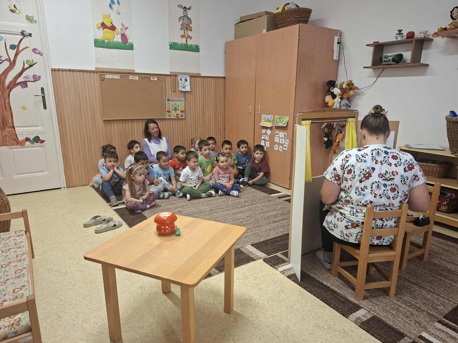 Október 22-én délelőtt az iskolába készülő gyermekeket meglátogatták a NABOK Kossuth Lajos Általános Iskola leendő első osztályos tanítói, Győriné Tóth Edina és Kovács-Rácz Enikő. A tanítók a gyermekekkel együtt beszélgettek, énekeltek, mondókáztak és játszottak.
