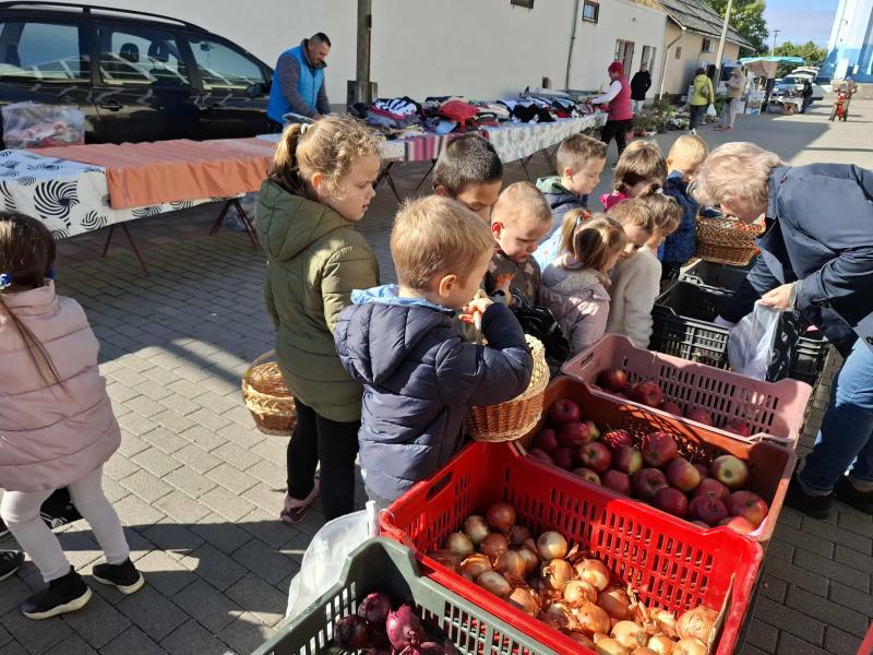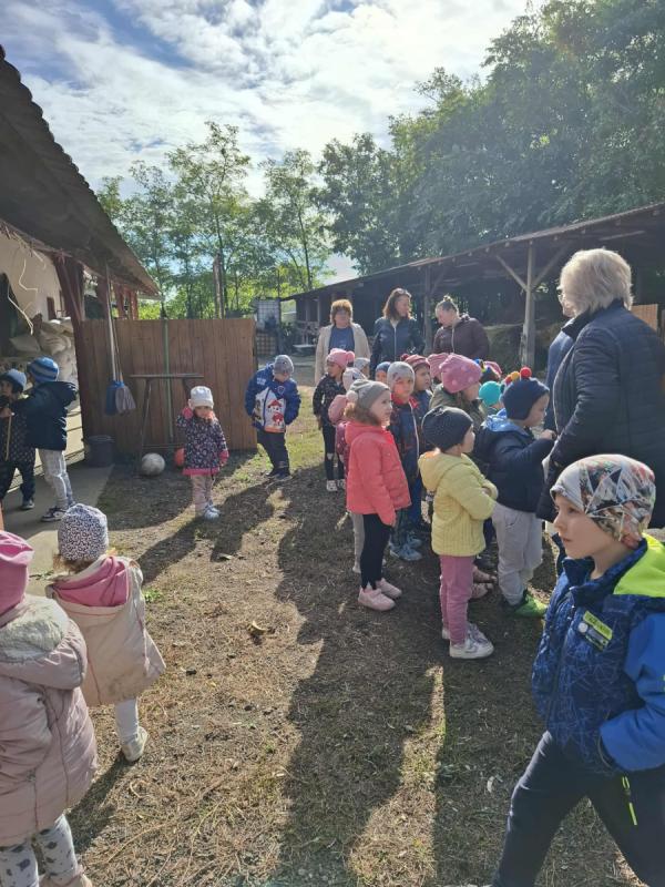 A tavalyi évhez hasonlóan, idén is elsétálhattunk Szűcs Gábor gazda udvarára, és testközelből is megfigyelhettük az ott élő háziállatokat, malacokat, bocit, lovat, juhokat. Az udvaron lovas kocsit is megfigyelhettek a gyermekek, és többféle gabonából is kaptunk kisebb mennyiséget, amelyet magunkkal vihettünk a csoportszobákba. A gyerekek nagyon élvezték a rövid kirándulást, sokáig emlegették élményeiket. Ezúton is nagyon köszönjük a szíves fogadását Gabi bácsinak!