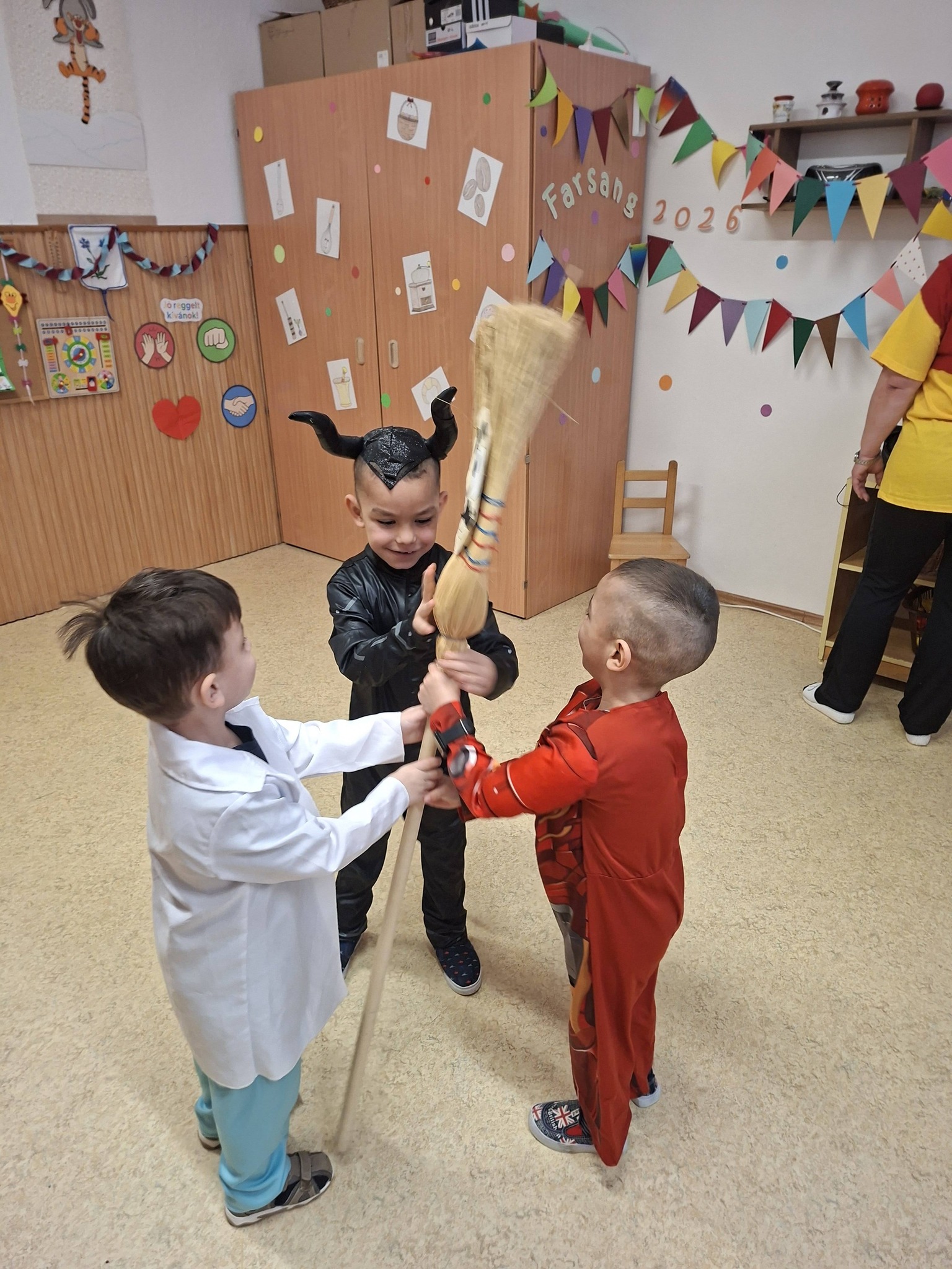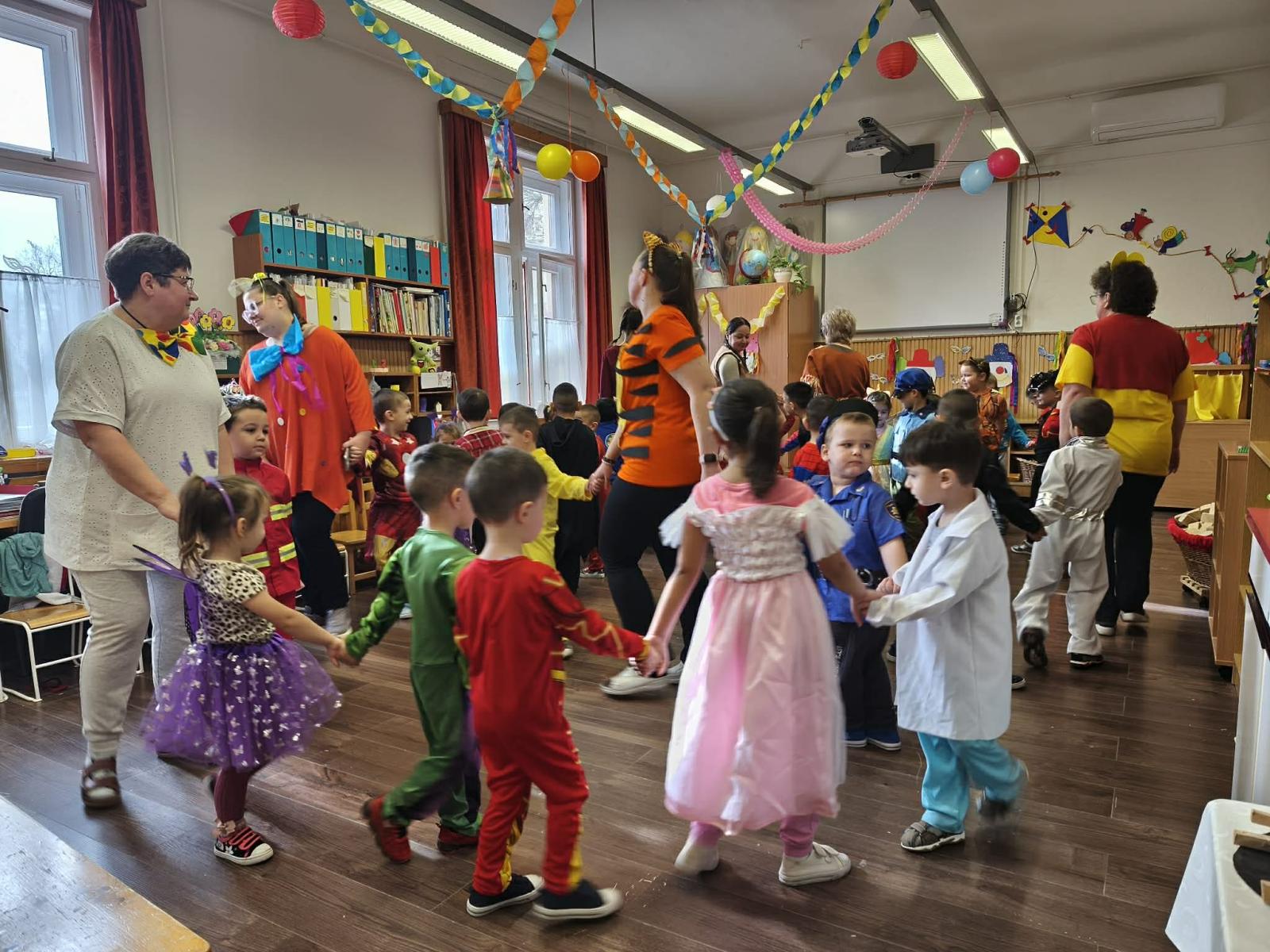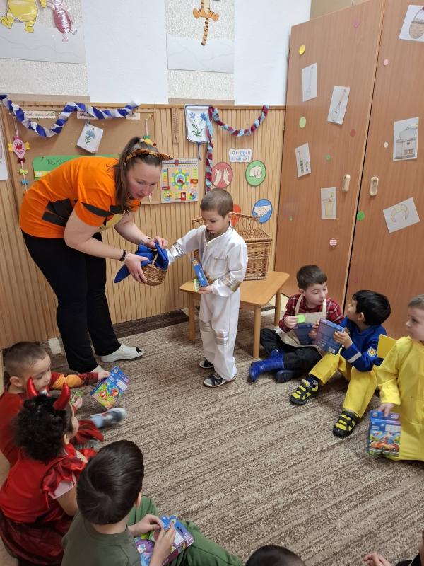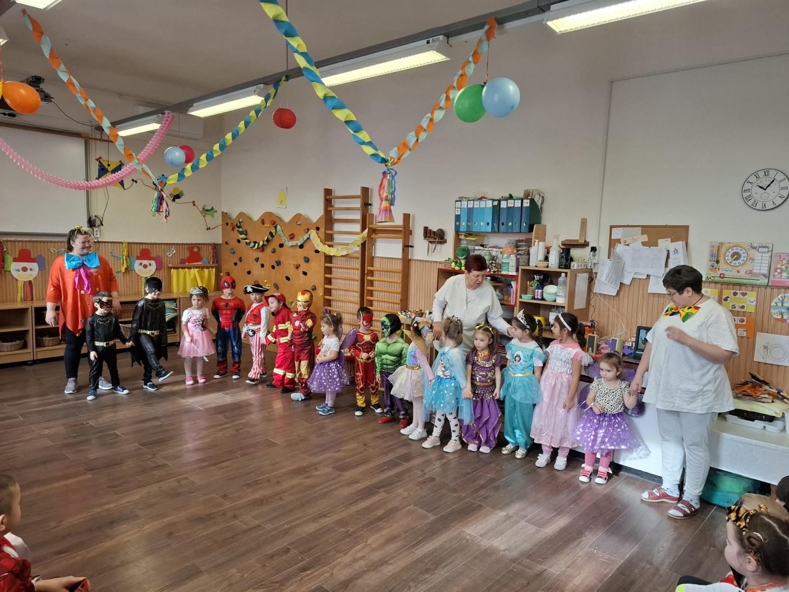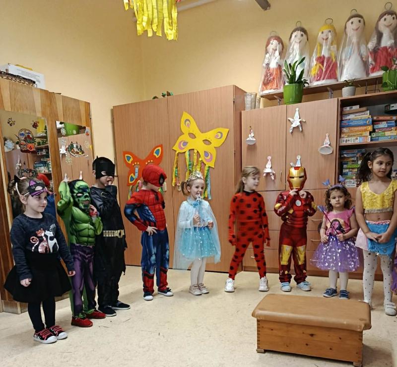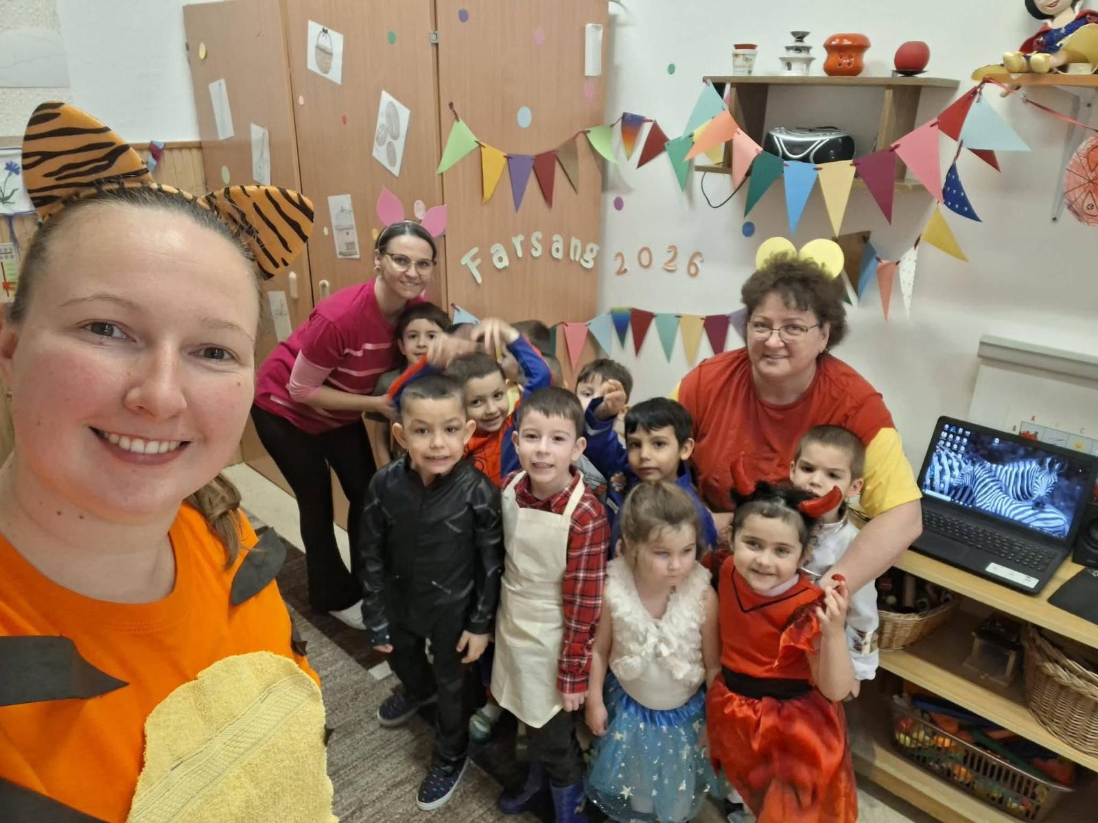 Farsangi időszakunkat ezzel a lendülettel és bizakodással kezdtük, hiszen a tavaszt már mindannyian nagyon várjuk. Sokat énekeltünk, zenéltünk, mulatoztunk. Jelmezbálról szóló meséket és verseket hallgattunk, tanultunk. Mindenki izgatottan készült a nyílt Ovis farsangunkra, ahová a szülőket is nagy örömmel vártuk. Közös játékkal, versenyfeladatokkal, tánccal és hangoskodással, mesedramatizálással töltöttünk el egy kellemes napot, és bíztunk benne, hogy a tél is megijed és végre helyet enged a tavasznak. A játékos délelőtt minden gyermeknek és felnőttnek emlékezetes marad. Köszönjük a Szülők támogatását csemegékkel, süteményekkel és üdítőkkel.