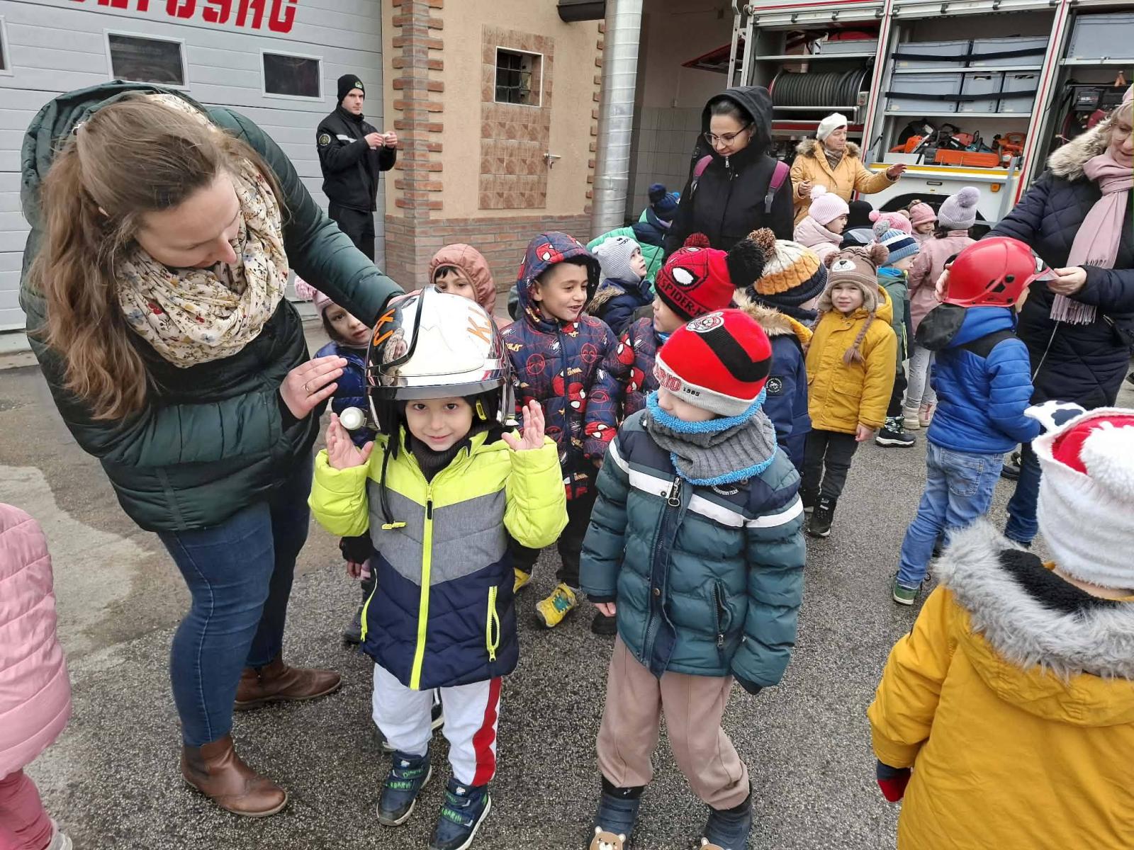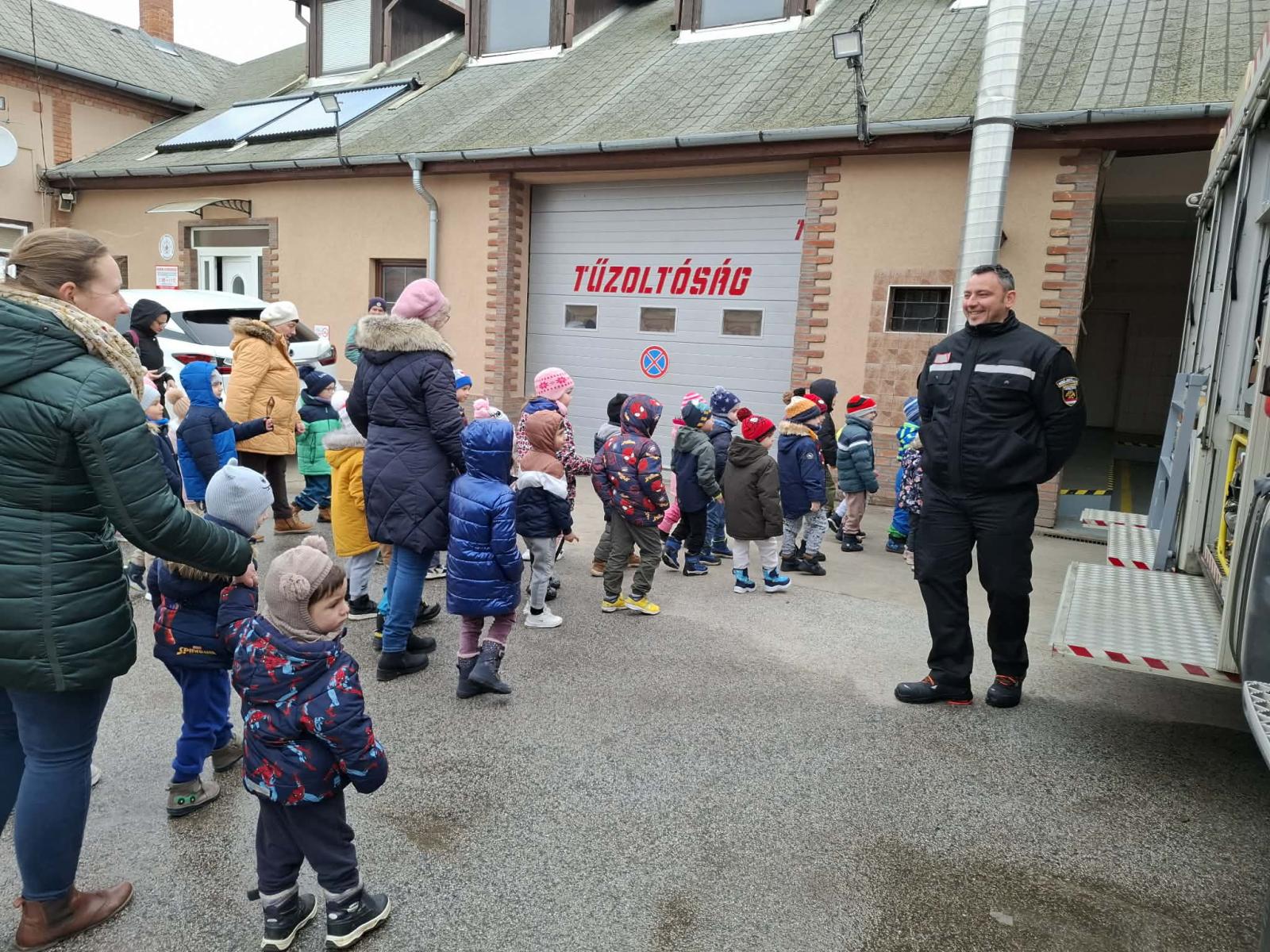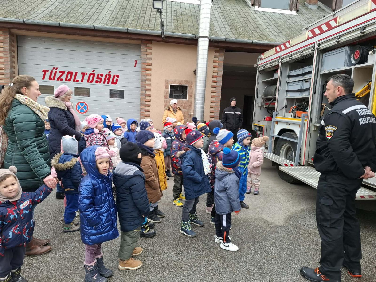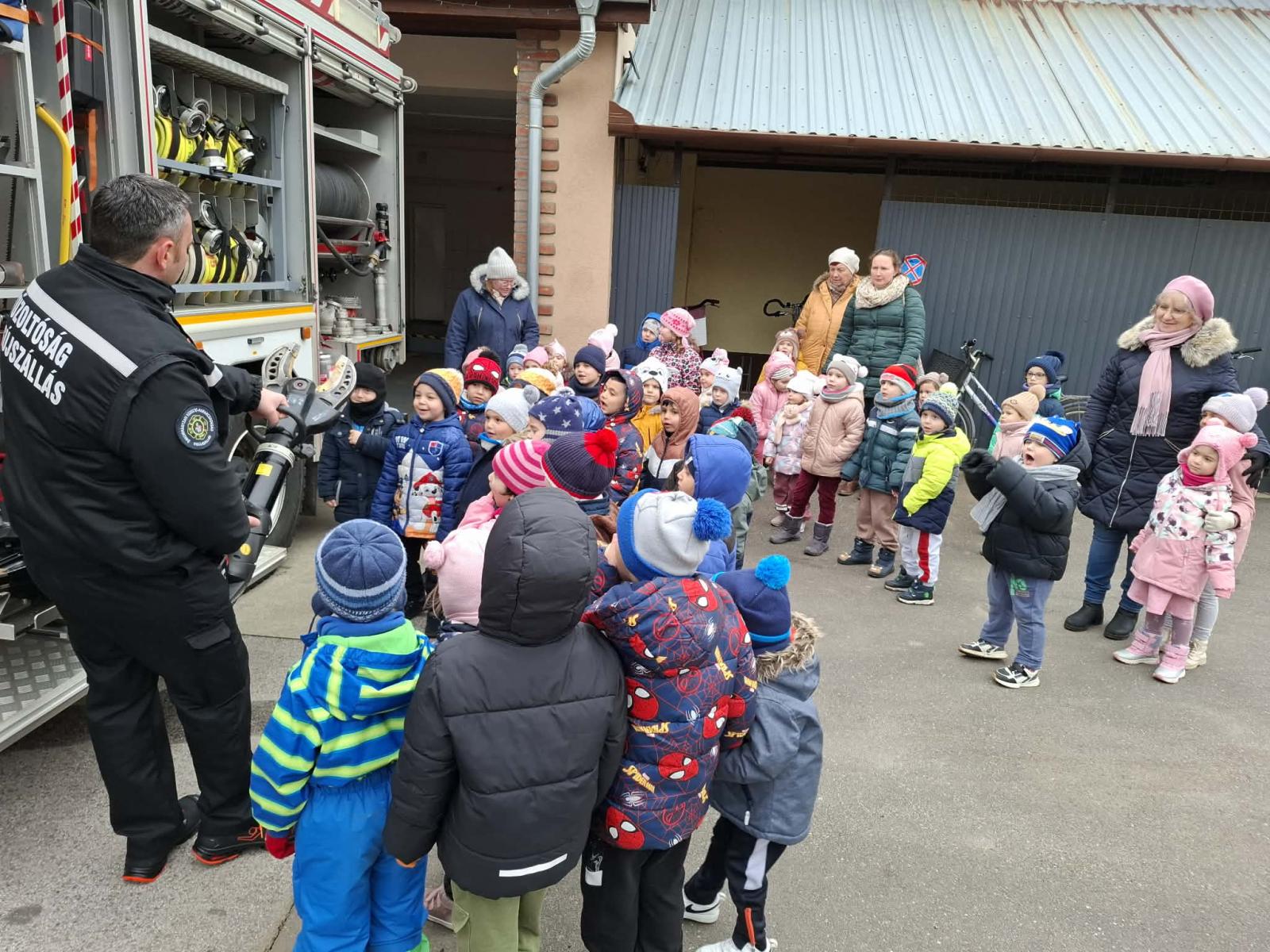 A hónap további részében a szakmákkal, foglalkozásokkal ismerkedtünk a csoportszobákban. Megbeszéltük, ki mi szeretne lenni, ha nagy lesz és kinek mivel foglalkoznak a szülei. Foglalkozásaink során szakácsokká, orvosokká, tűzoltókká válhattak a gyermekek az óvoda falain belül és kívül is. Élményszerző sétánk alkalmával a Kisújszállási Önkormányzat Tűzoltó-parancsnokságára látogattunk el, ahol a tűzoltó bácsik minden eszközt, felszerelést részletesen megmutattak. Megcsodálhattuk és ki is próbálhattuk a tűzoltóautót, és egy próbariasztás élményét is átélhettük. A gyerekek pedig verssel, rajzzal, színezővel köszönték meg a kedves körbevezetést. Ezúton is nagyon szépen köszönjük Kocsmár József tűzoltónak és a Tűzoltó-parancsnokság valamennyi kollégájának a szíves fogadtatást!