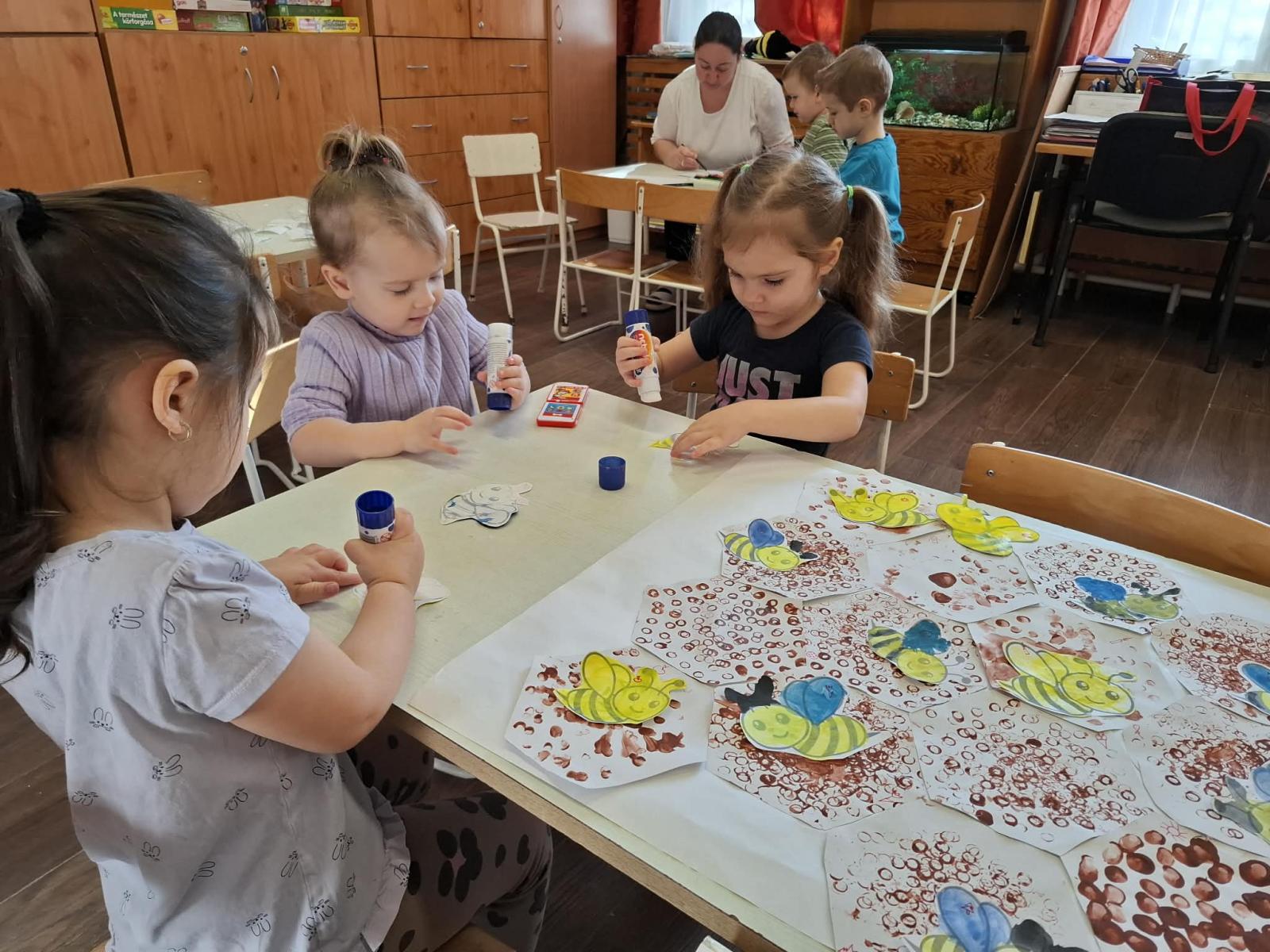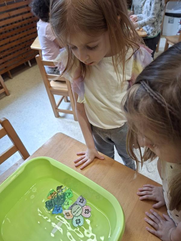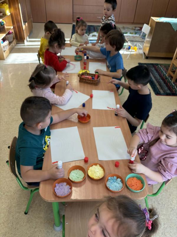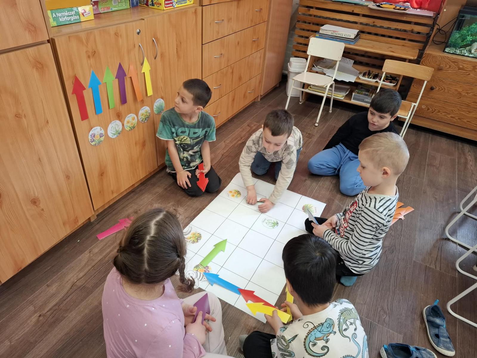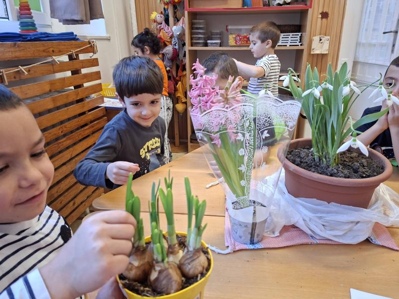 A csoportszobákban és az óvodai, valamint a közeli kertekben megfigyelhettük a tavasz első virágait, a hóvirágot, krókuszt, téltemetőt. Virágokat gyurmáztunk, festettünk, ragasztottunk és vágtunk. Kivirágosodtak a csoportszobáink, ablakaink és az óvoda falai is. Kedves dalokat énekeltünk, eső-, és napvarázsló játékot játszottunk, mondókáztunk, verseltünk. Megfigyeltük a színek keveredését és a szivárvány színeit is.