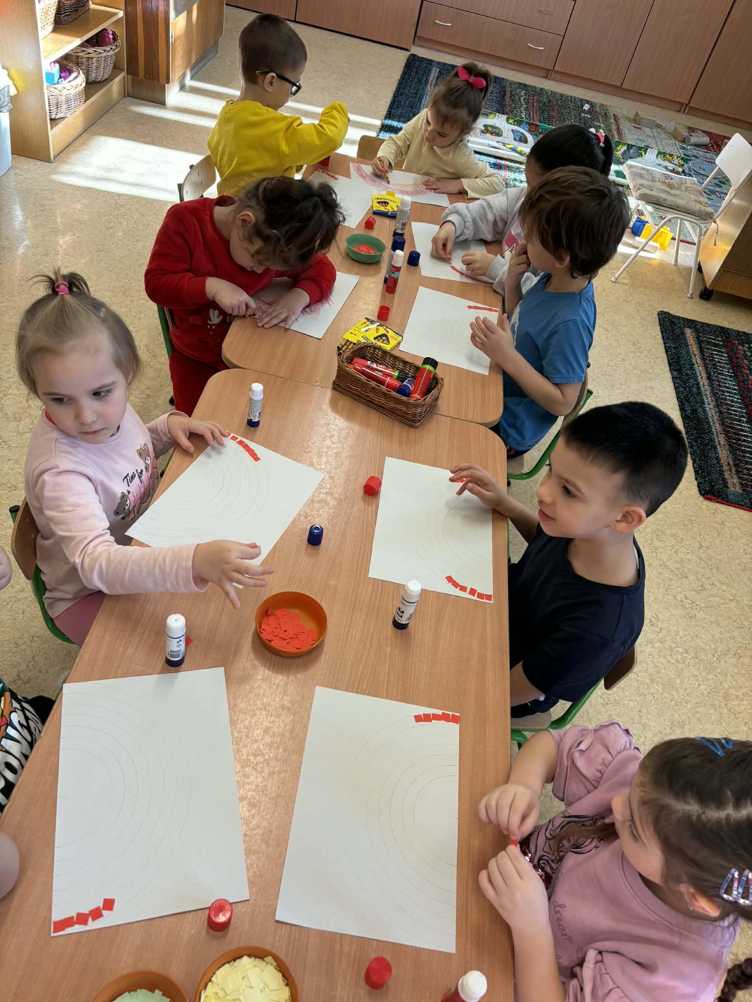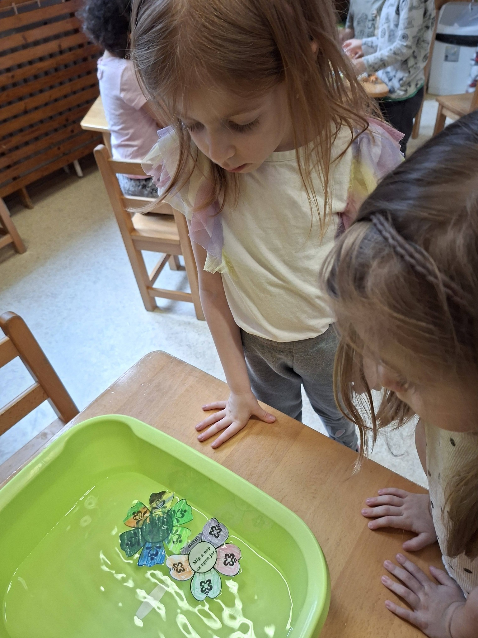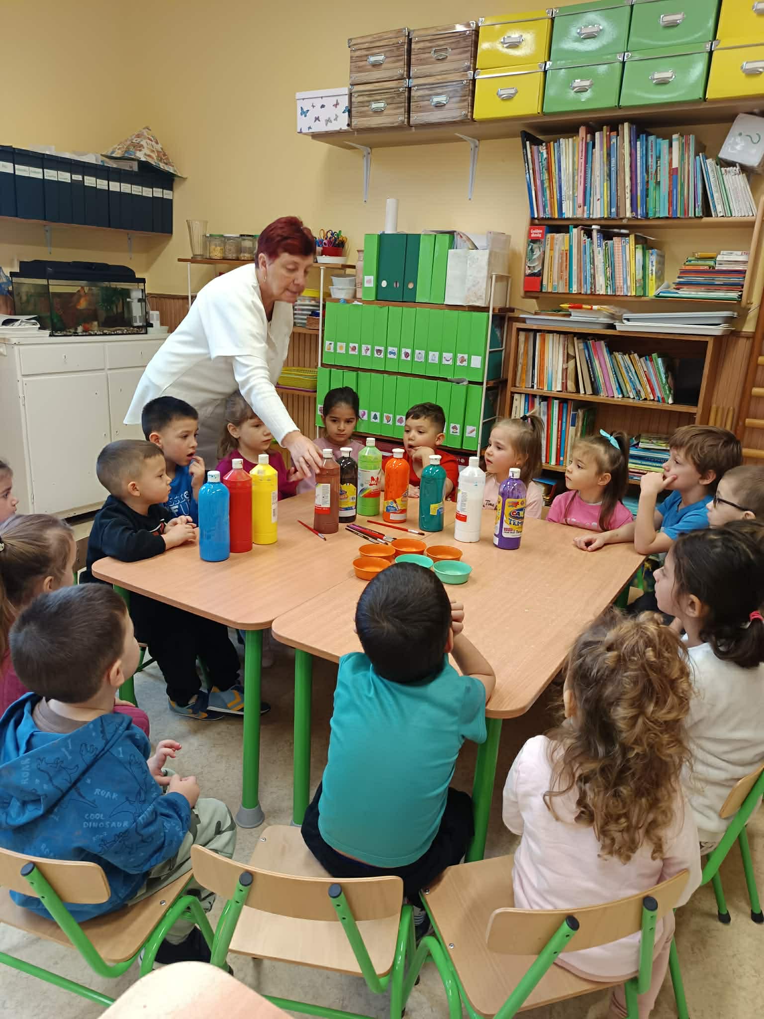 A csoportszobákban és az óvodai, valamint a közeli kertekben megfigyelhettük a tavasz első virágait, a hóvirágot, krókuszt, téltemetőt. Virágokat gyurmáztunk, festettünk, ragasztottunk és vágtunk. Kivirágosodtak a csoportszobáink, ablakaink és az óvoda falai is. Kedves dalokat énekeltünk, eső-, és napvarázsló játékot játszottunk, mondókáztunk, verseltünk. Megfigyeltük a színek keveredését és a szivárvány színeit is.
