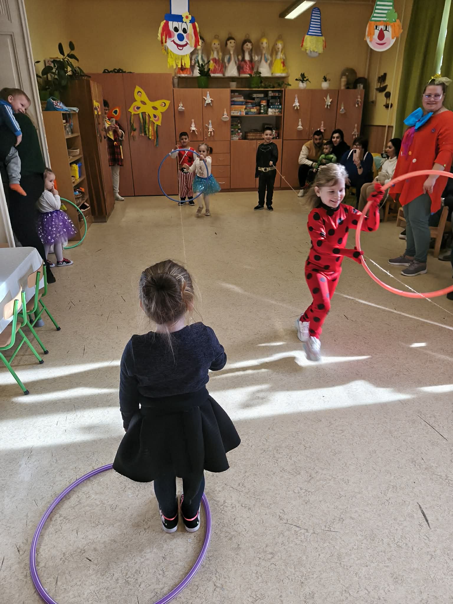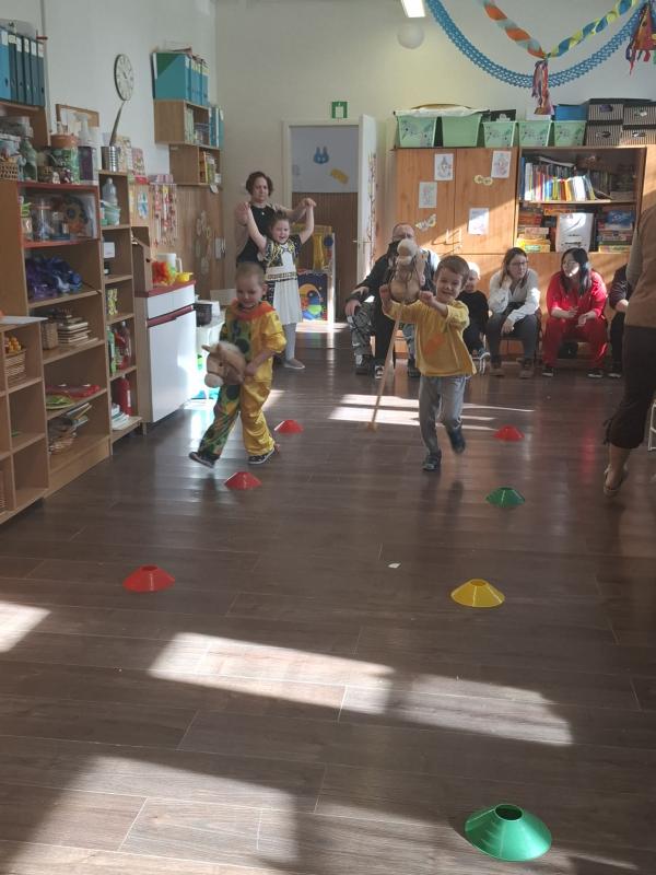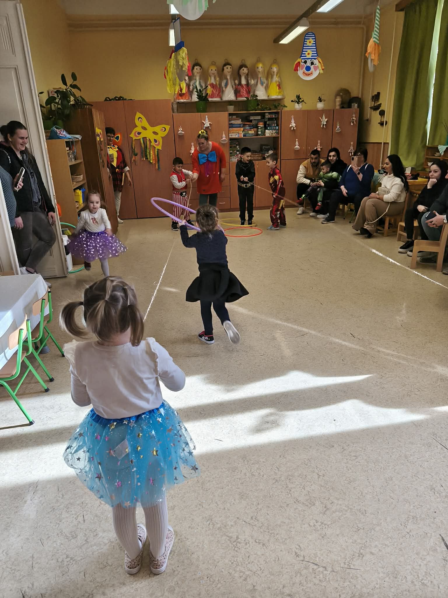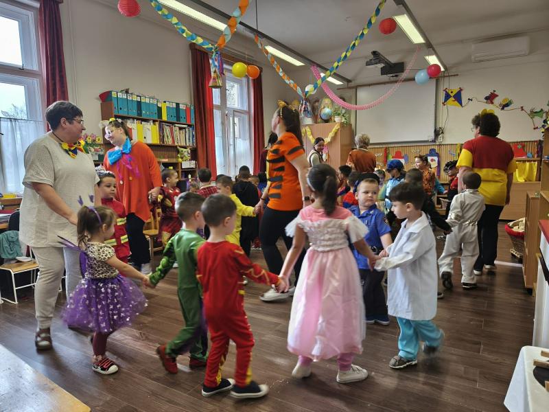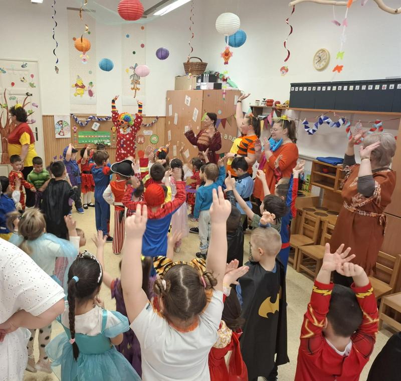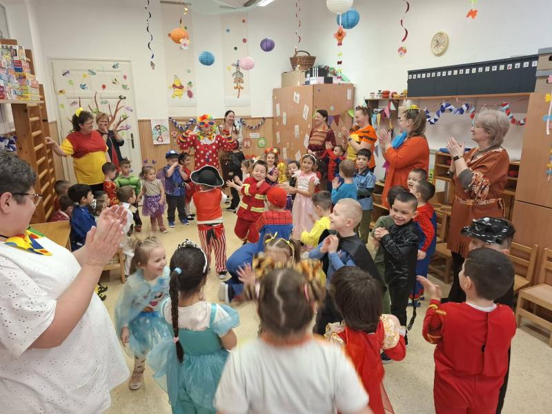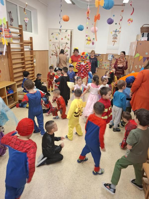 A vidám farsangi napokban pedig egy különleges vendégünk is volt az óvodában, egy igazi farsangi Bohóc. A bohóc közös vidámkodásra, táncra hívta a három csoport gyermekeit, aki szinte felrobbantotta a hangulatot óvodánkban! :D