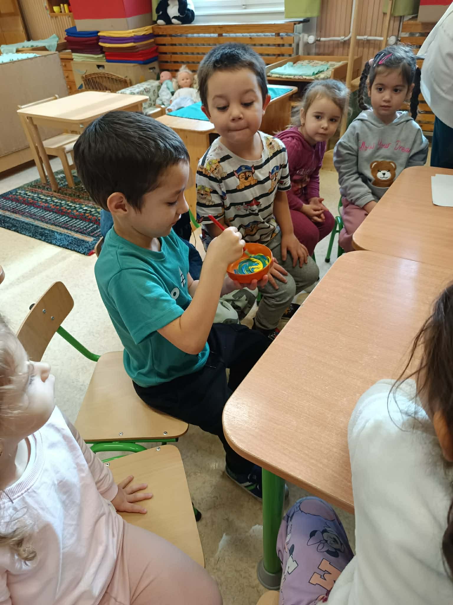 A hónap végén pedig a tavasz első virágaival és a színekkel ismerkedtünk, hiszen a tél elűzése nagyon jól sikerült.