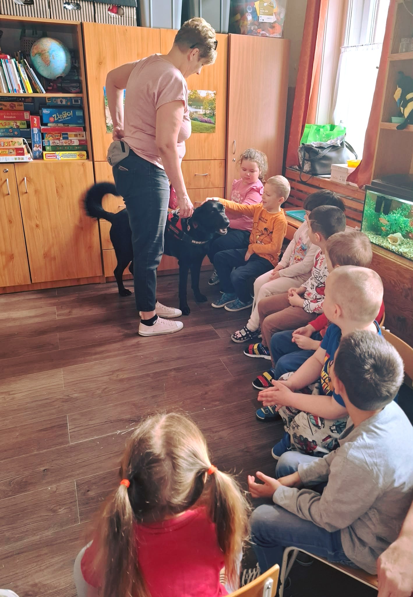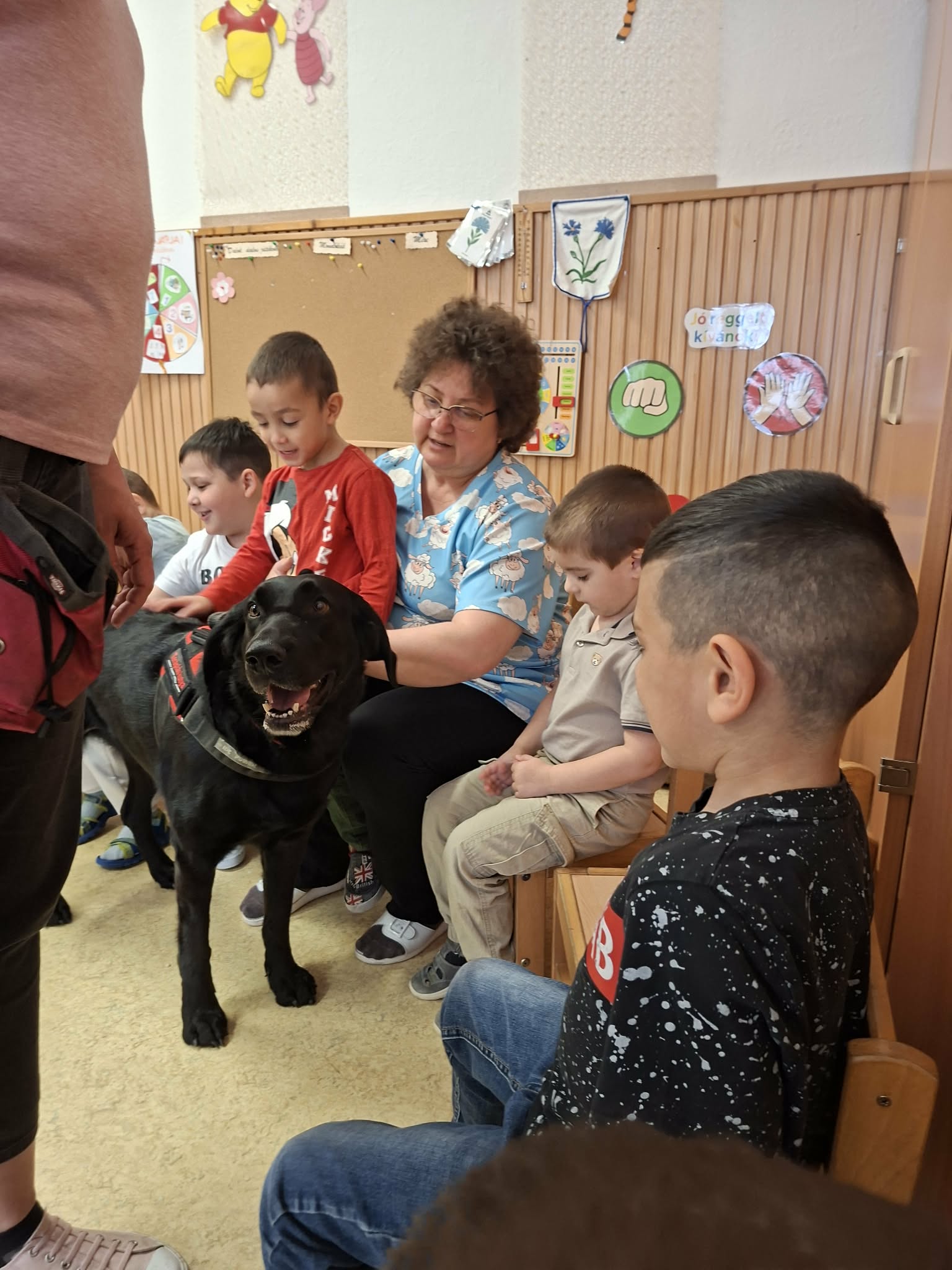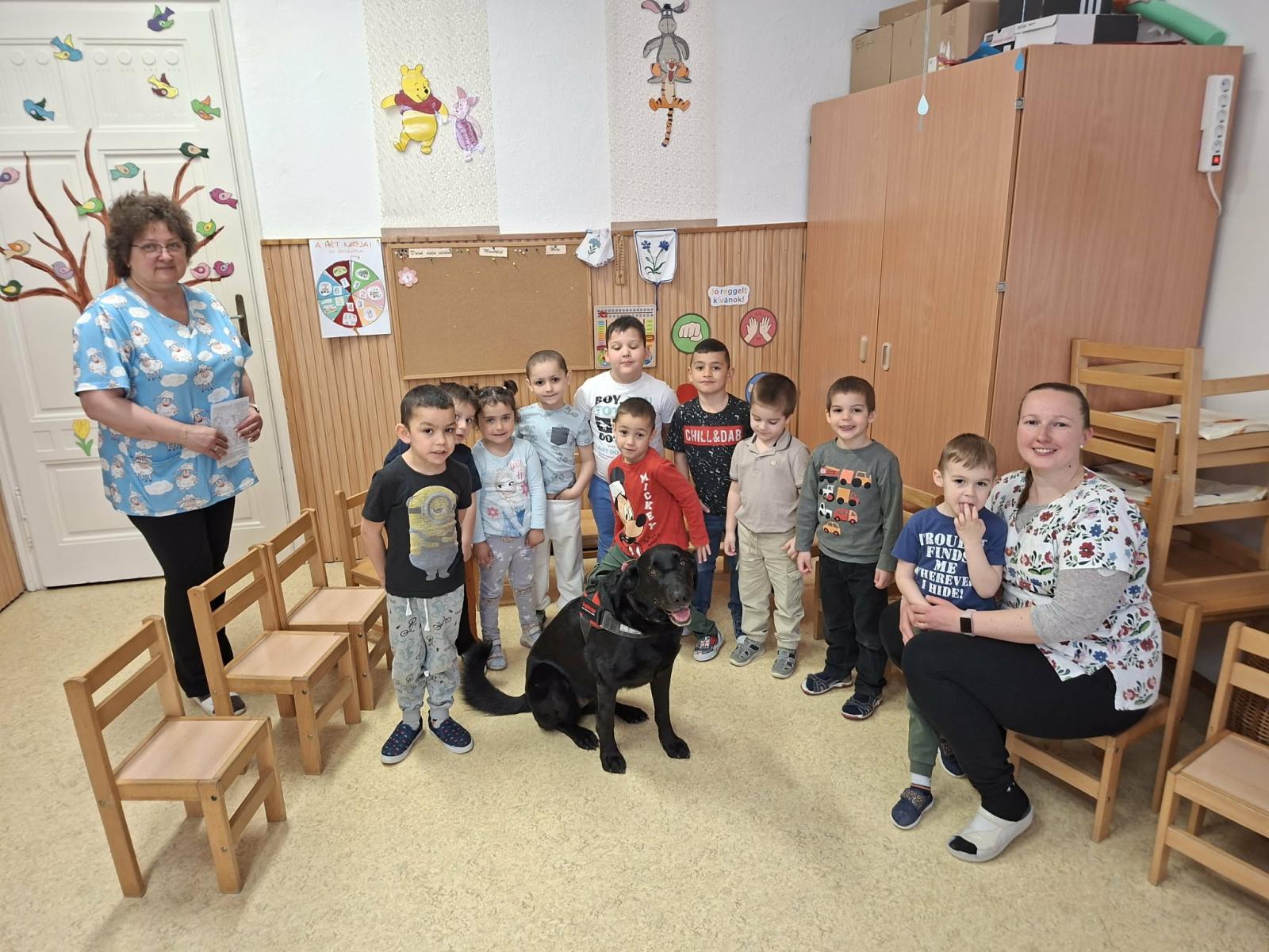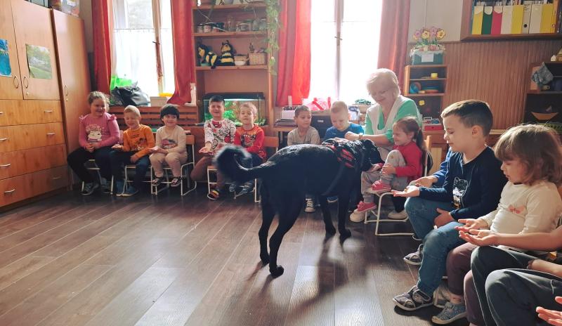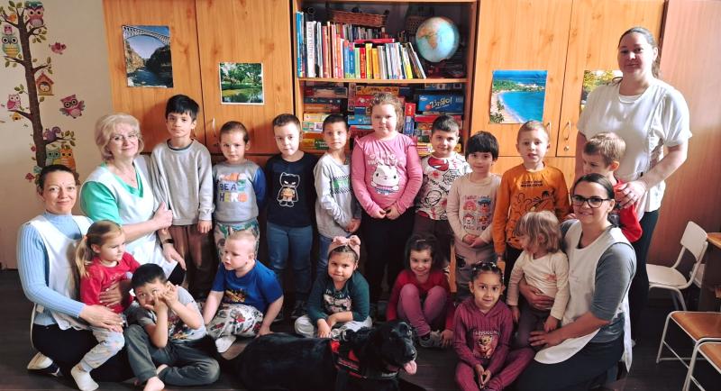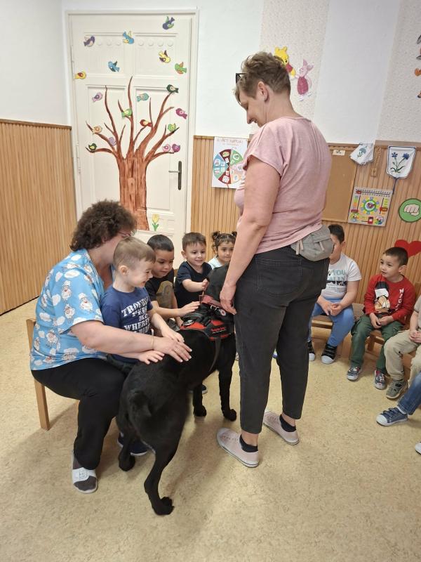 Egy különleges vendég látogatott meg bennünket március 19-én, Polli a terápiás kutya és gazdája. Az októberi állatvédelmi témahét folytatásaként érkezett Polli kutyus a gyermekekhez, érzékenyíteni a gyermekeket az állatokhoz való közeledésben, a velük való bánásmódban. Játékos és fejlesztő feladatokon keresztül segítette a kicsik érzelmi és szociális fejlődését.