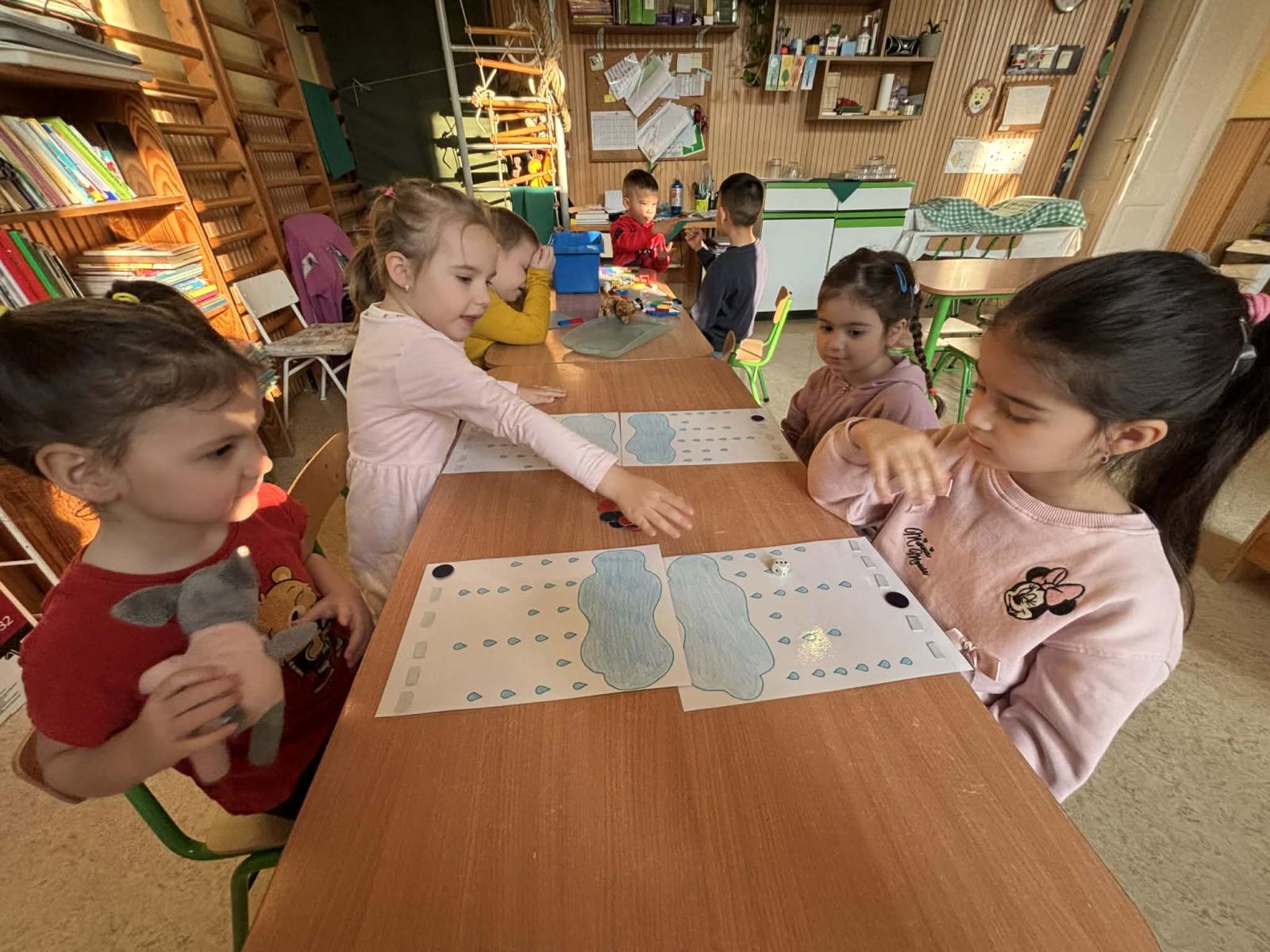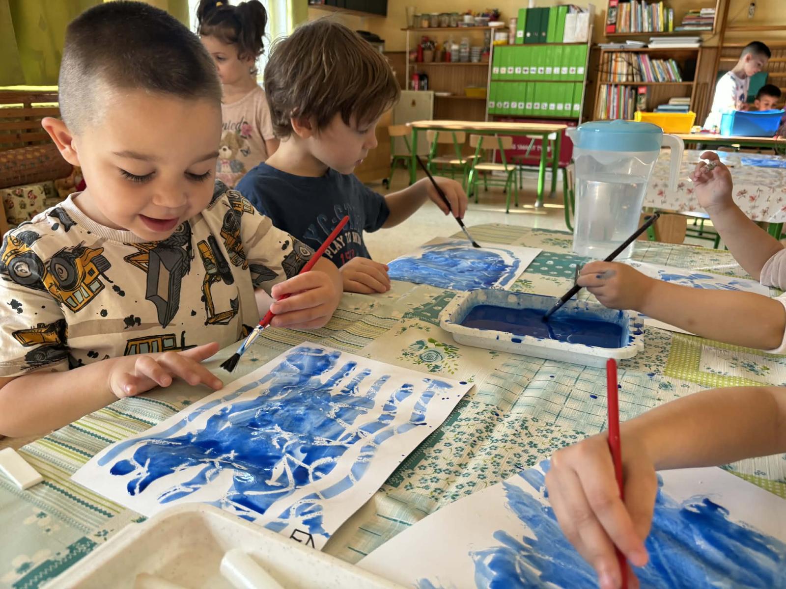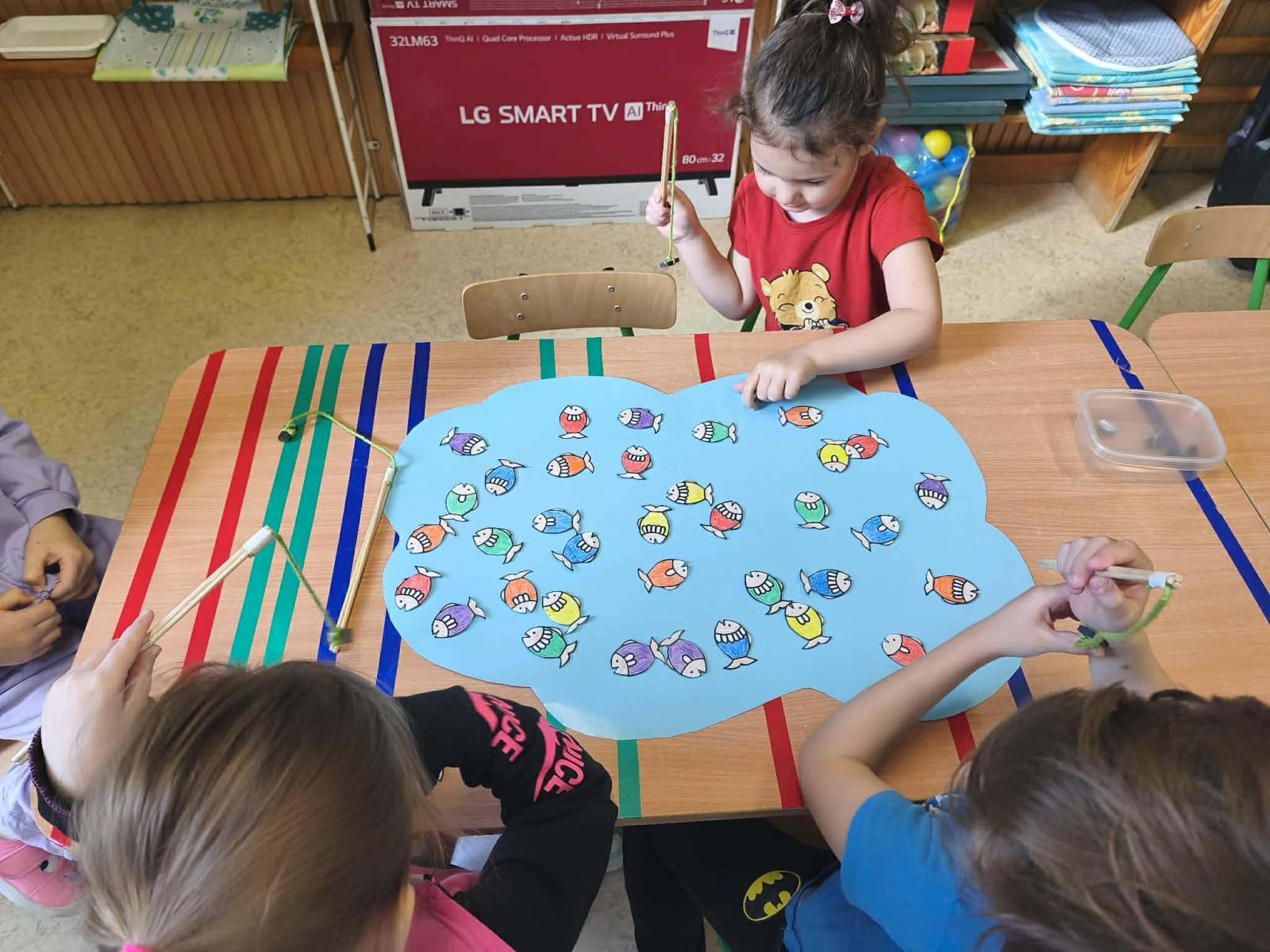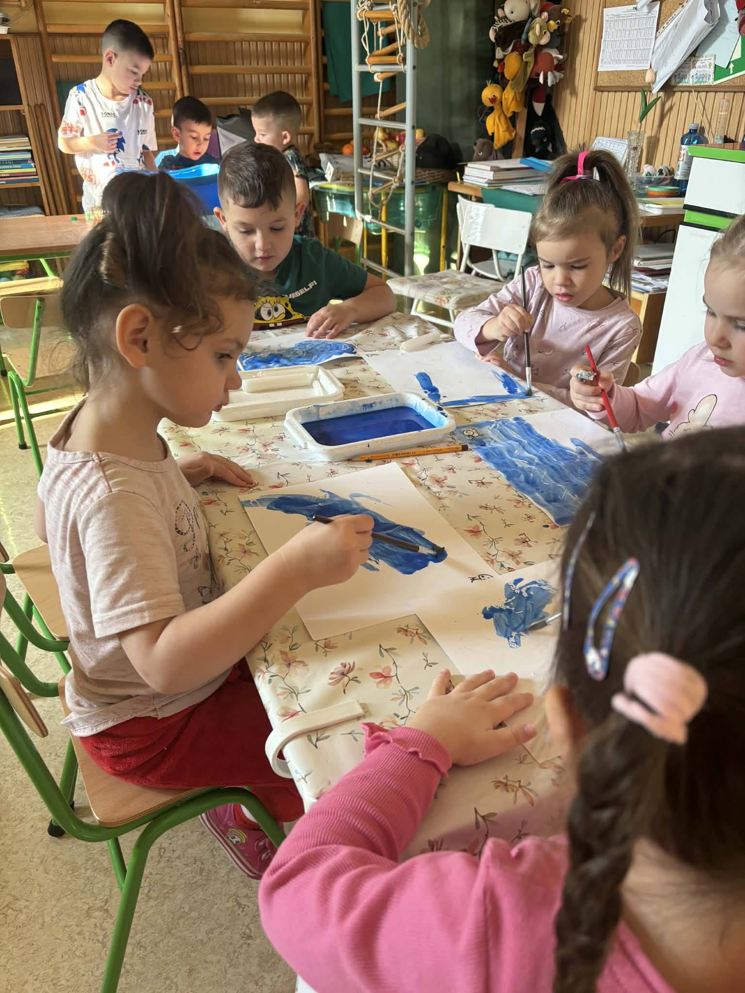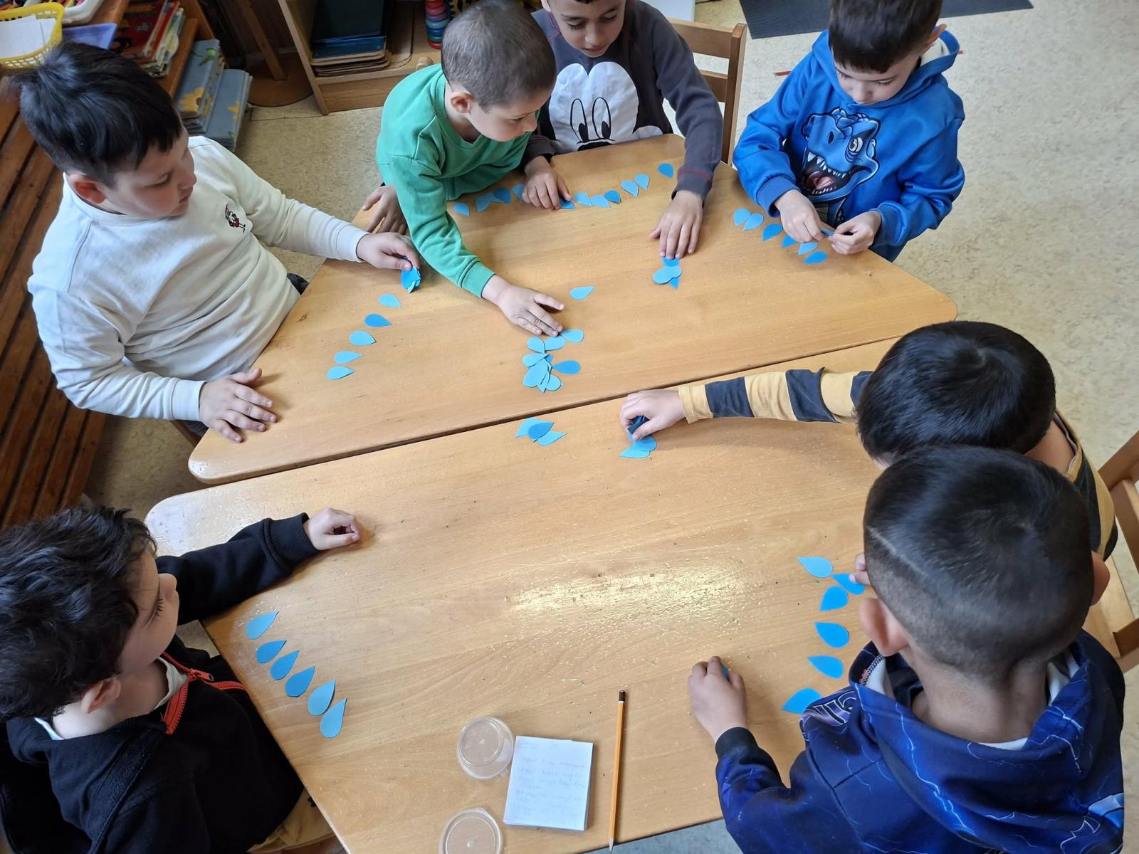 Vizuális tevékenységek alkalmával szivárványokat festettünk, ragasztottunk, halakat és békákat díszítettünk, nyomdáztunk. Esőfelhőket varrtunk és ábrázoltunk. A víz körforgásának lépéseit mondókázásaink során is több alkalommal eljátszottuk. Meséink és verseink hallgatása, mesélése során különböző vízhez kapcsolódó történeteket ismertünk meg. Vízcseppeket és halacskákat számlálgattunk.