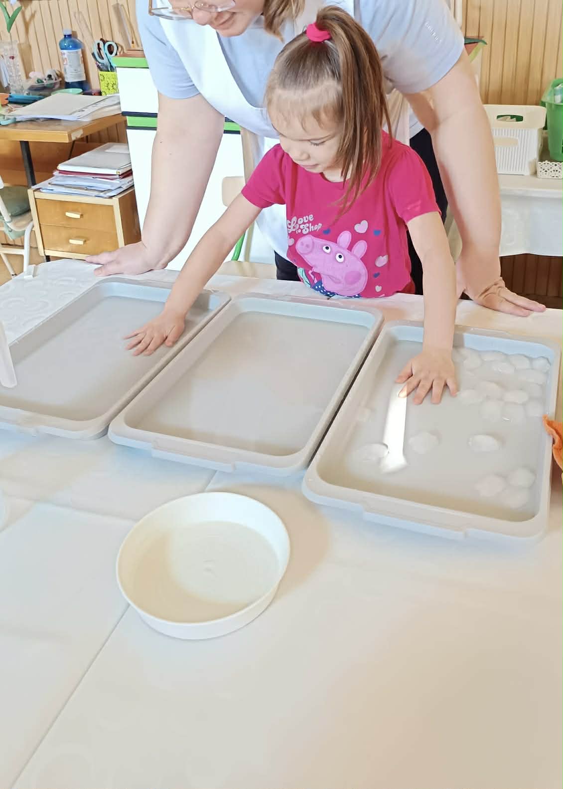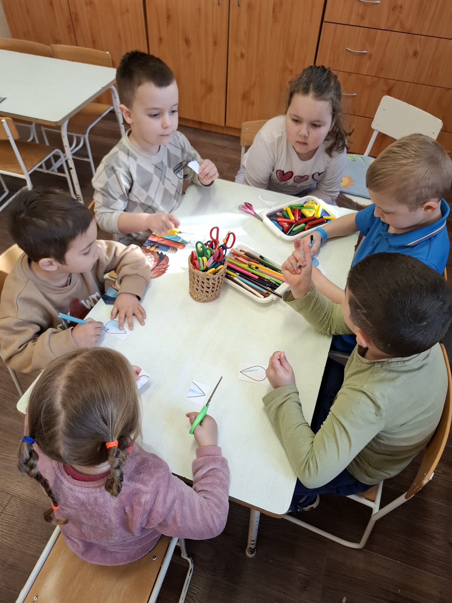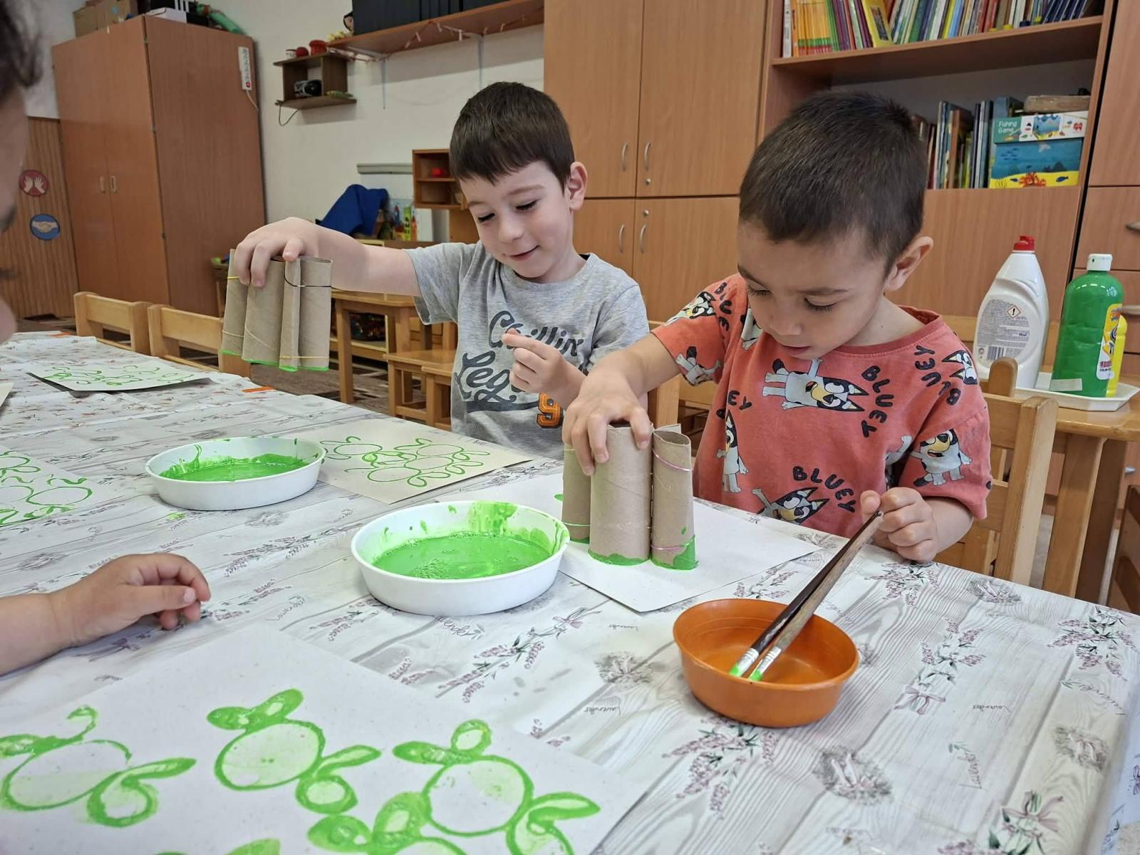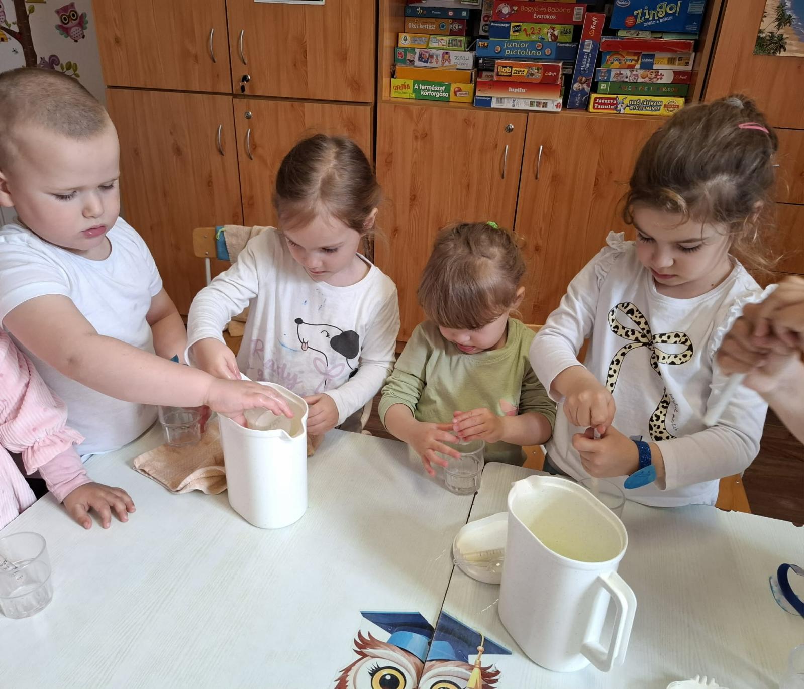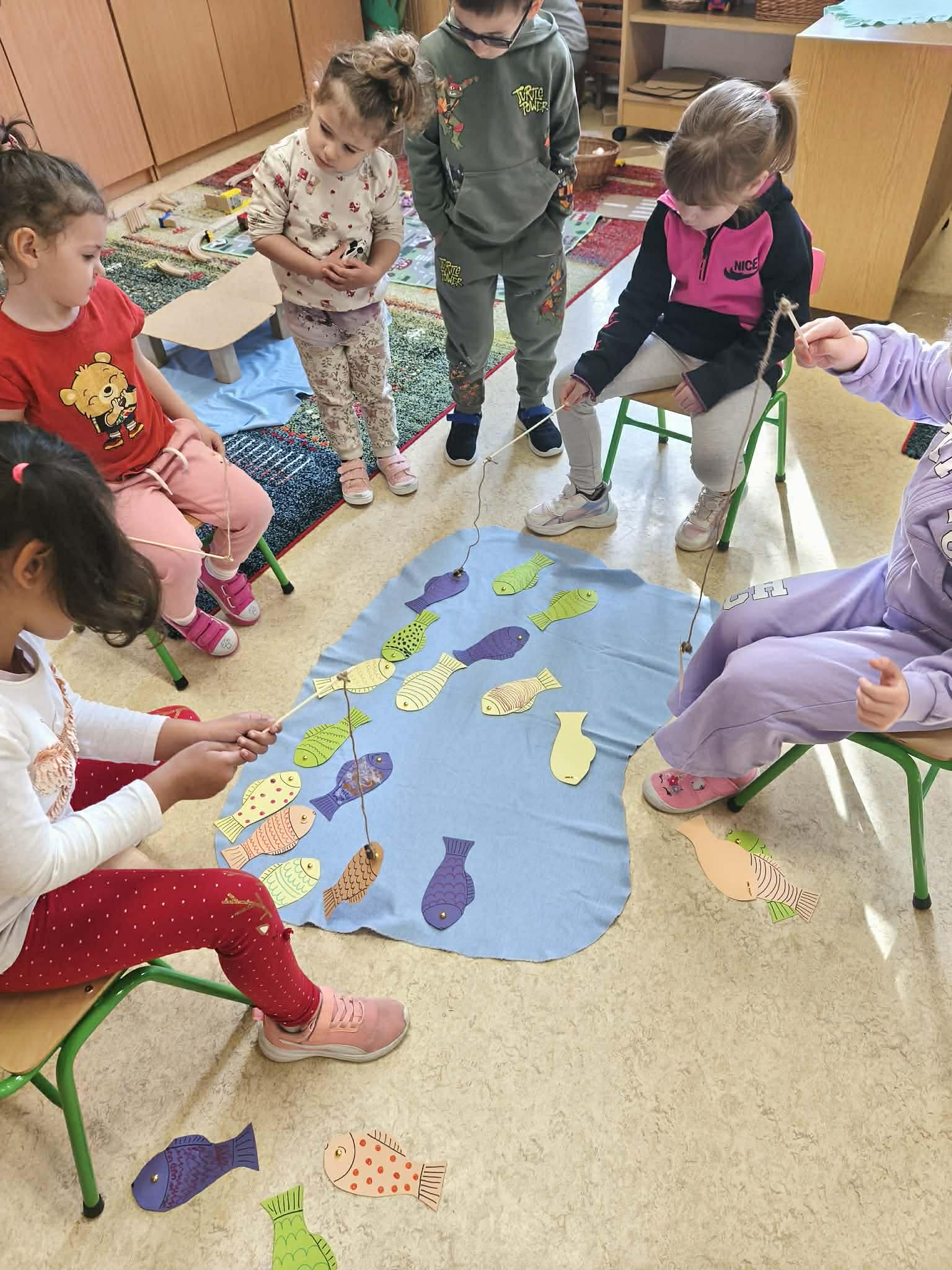Vizuális tevékenységek alkalmával szivárványokat festettünk, ragasztottunk, halakat és békákat díszítettünk, nyomdáztunk. Esőfelhőket varrtunk és ábrázoltunk. A víz körforgásának lépéseit mondókázásaink során is több alkalommal eljátszottuk. Meséink és verseink hallgatása, mesélése során különböző vízhez kapcsolódó történeteket ismertünk meg. Vízcseppeket és halacskákat számlálgattunk.
