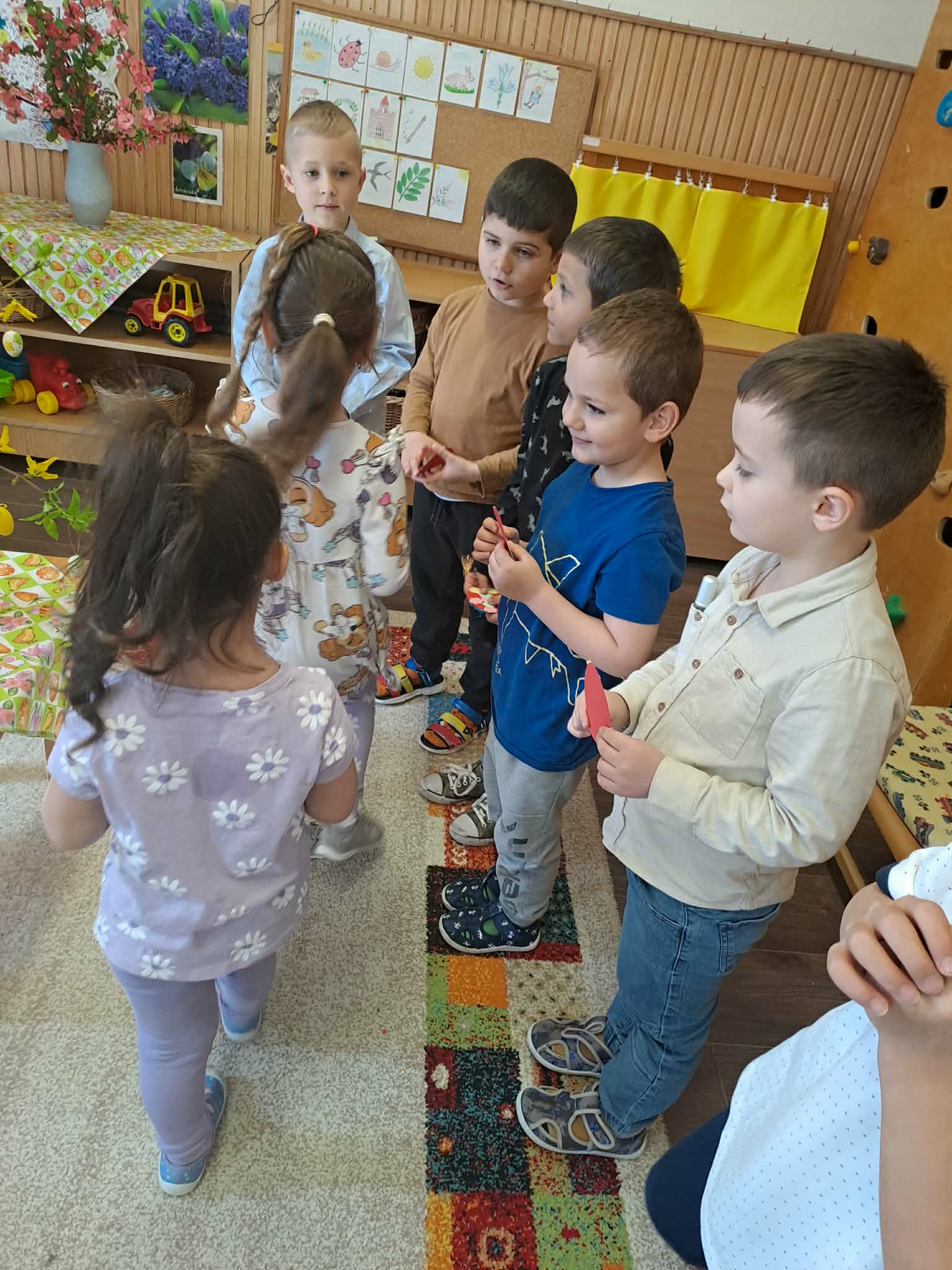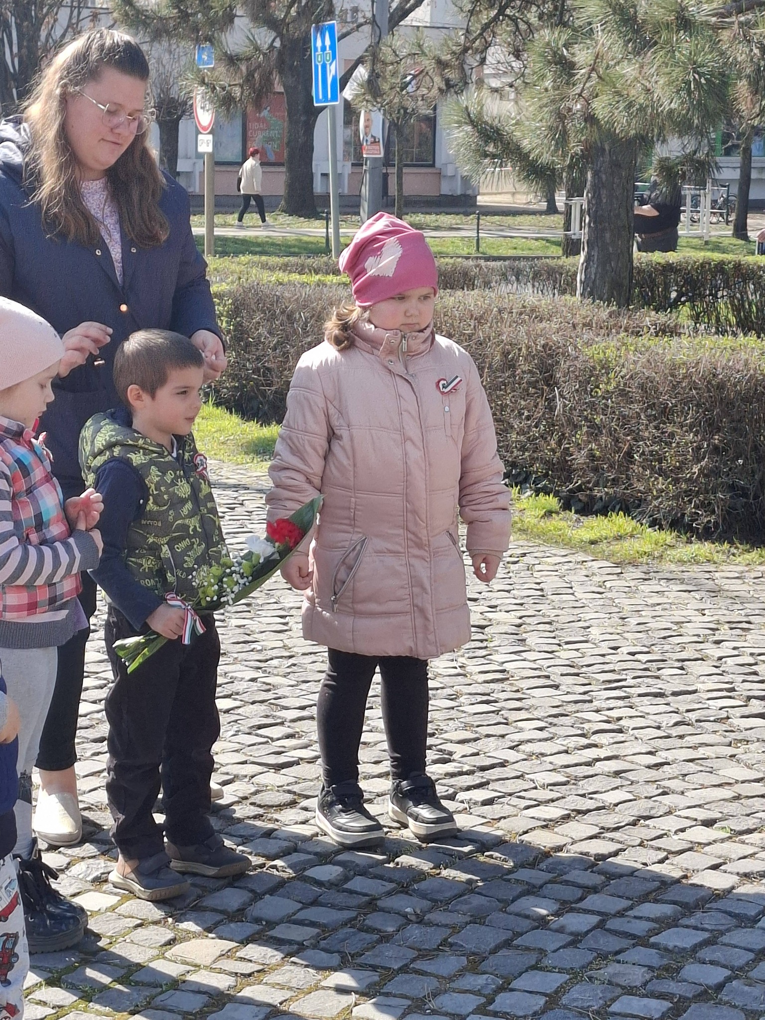 Március 15-e előtti napokban megismerkedtünk a nemzeti szimbólumainkkal, magyar zászlókat és kokárdákat, huszárokat színeztünk, festettünk. Mondókáztunk és énekeltünk a katonákról, Kossuth Lajosról és március 13-án elsétáltunk az 1848-49 szabadságharc emlékművéhez, ahol elhelyeztük az emlékezés nemzeti színű virágcsokrát.