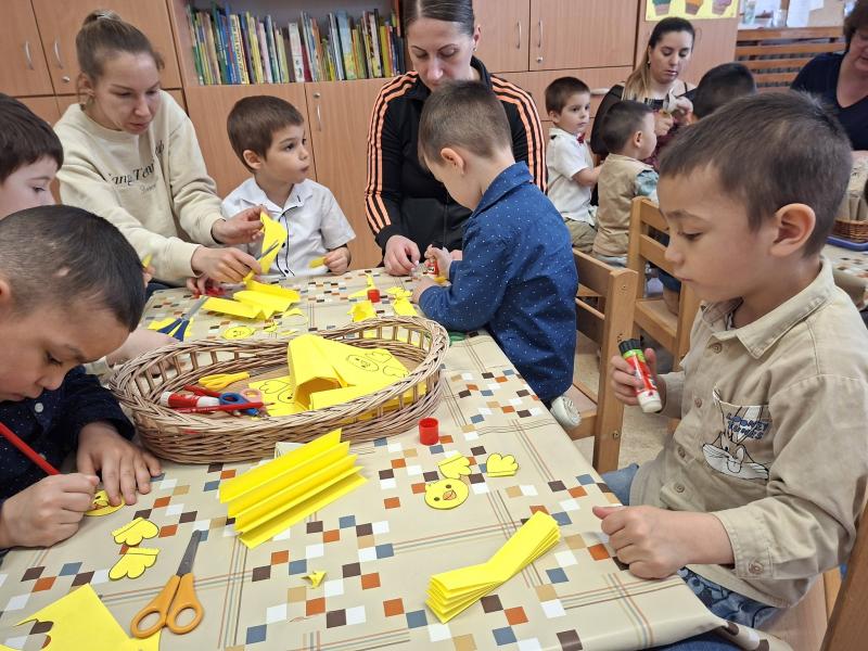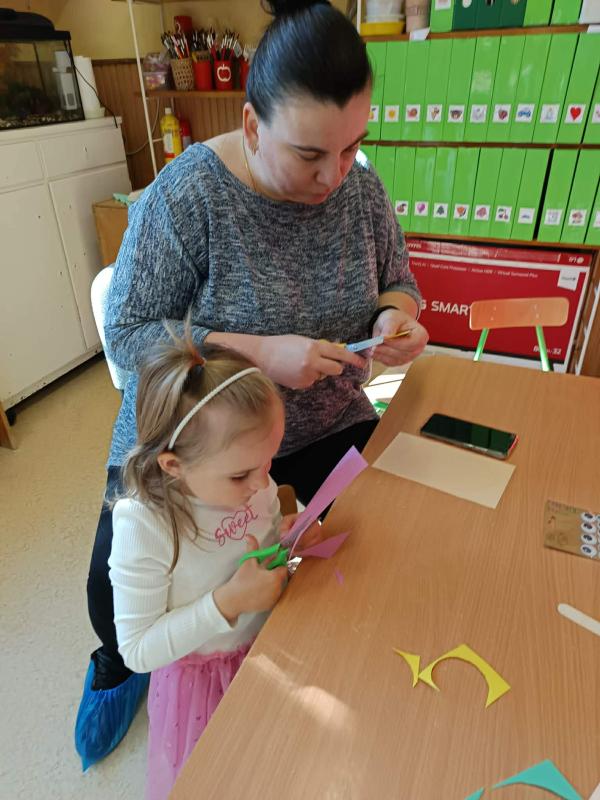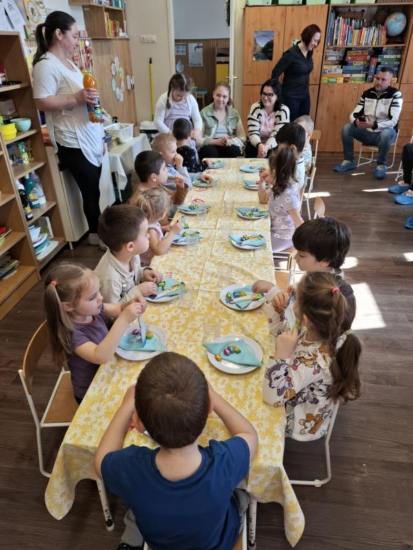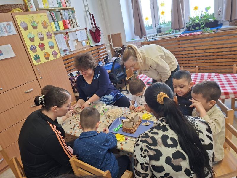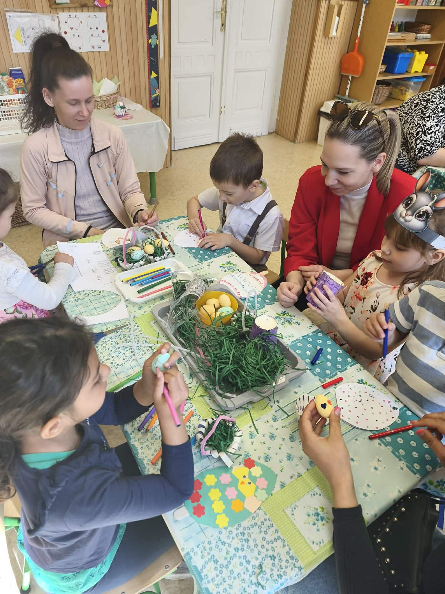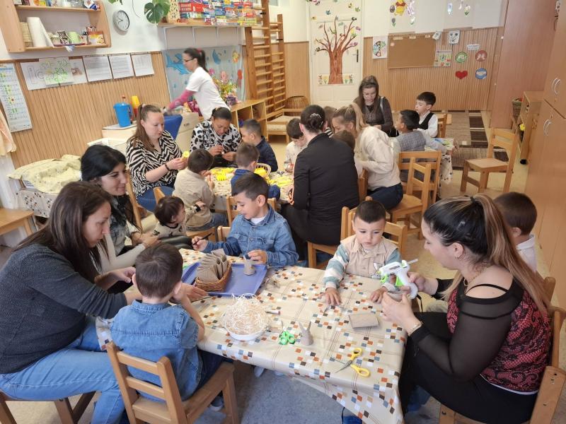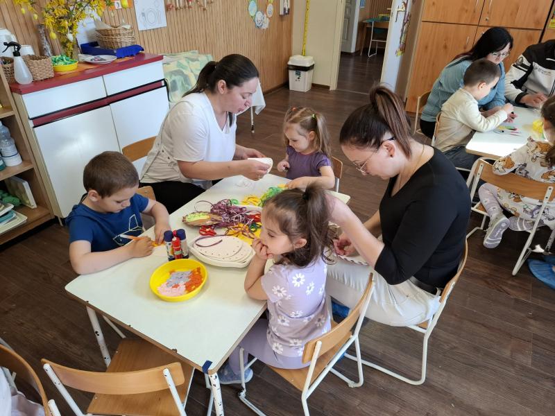 Április 1-jén pedig már a közös húsvéti barkácsolásunkra invitáltuk a szülőket, a húsvéti hosszúhétvége előtt. A gyermekek szüleikkel együtt kézműveskedhettek, locsolkodhattak a csoportban és együtt hangolódhattak a húsvéti ünnepekre. A nyílt délelőttünk kellemesen, jó hangulatban telt, nagy örömet okozva ezzel a gyermekeknek.