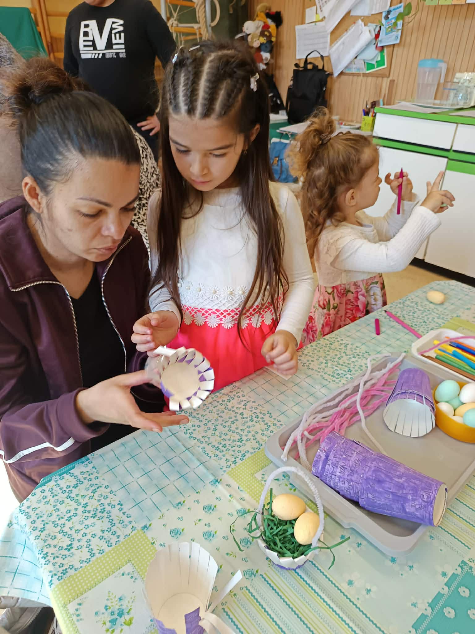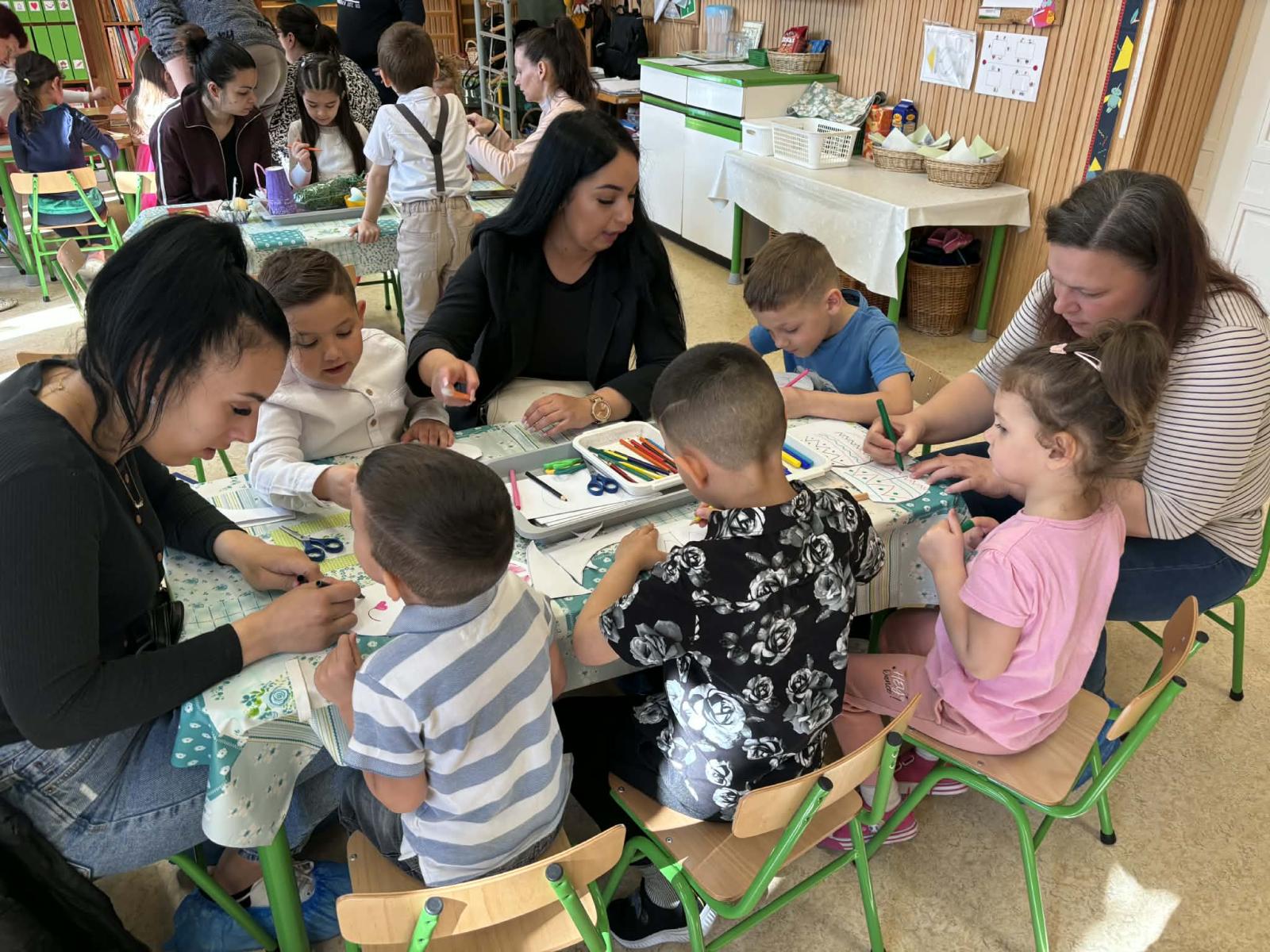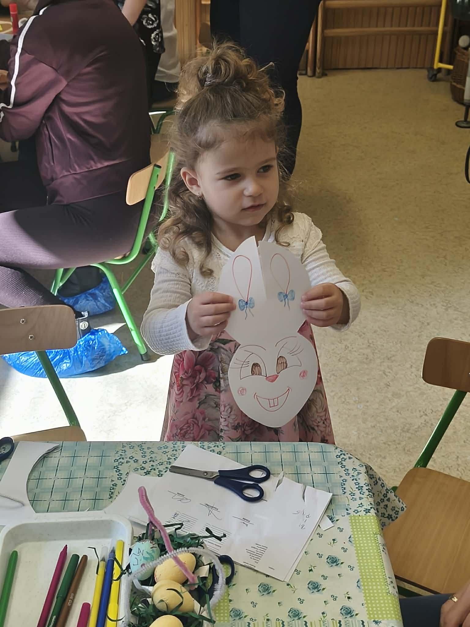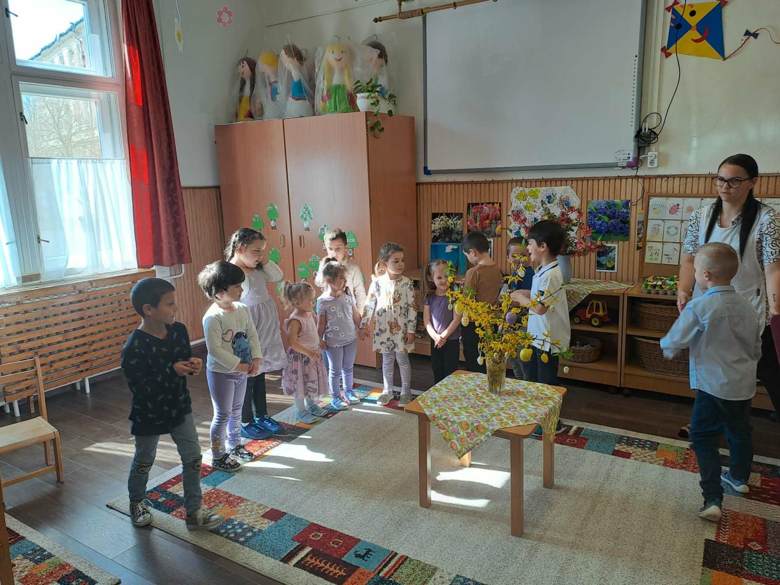 Április 1-jén pedig már a közös húsvéti barkácsolásunkra invitáltuk a szülőket, a húsvéti hosszúhétvége előtt. A gyermekek szüleikkel együtt kézműveskedhettek, locsolkodhattak a csoportban és együtt hangolódhattak a húsvéti ünnepekre. A nyílt délelőttünk kellemesen, jó hangulatban telt, nagy örömet okozva ezzel a gyermekeknek.