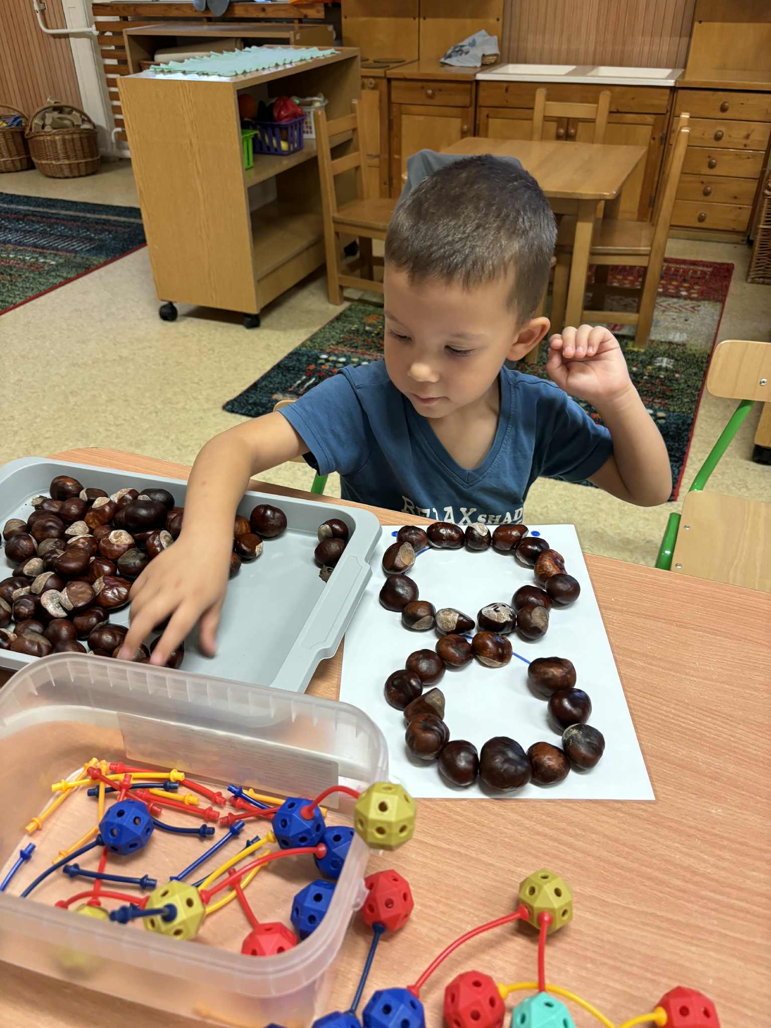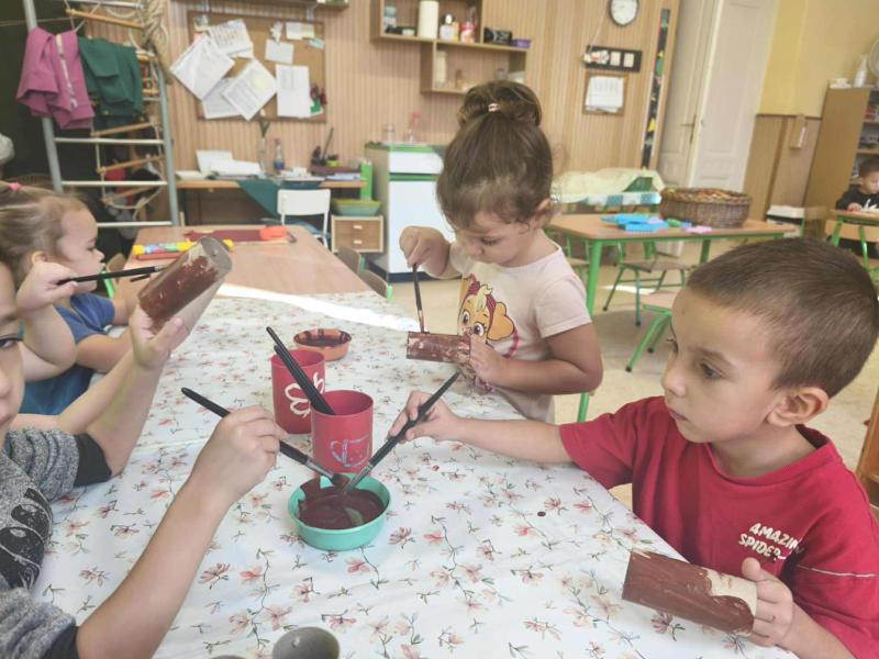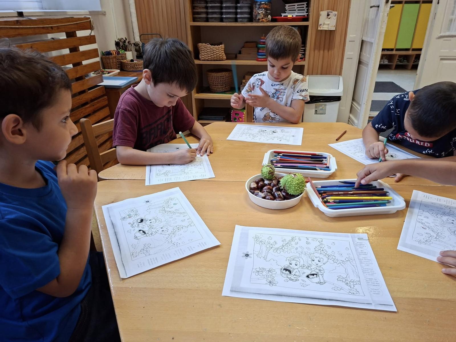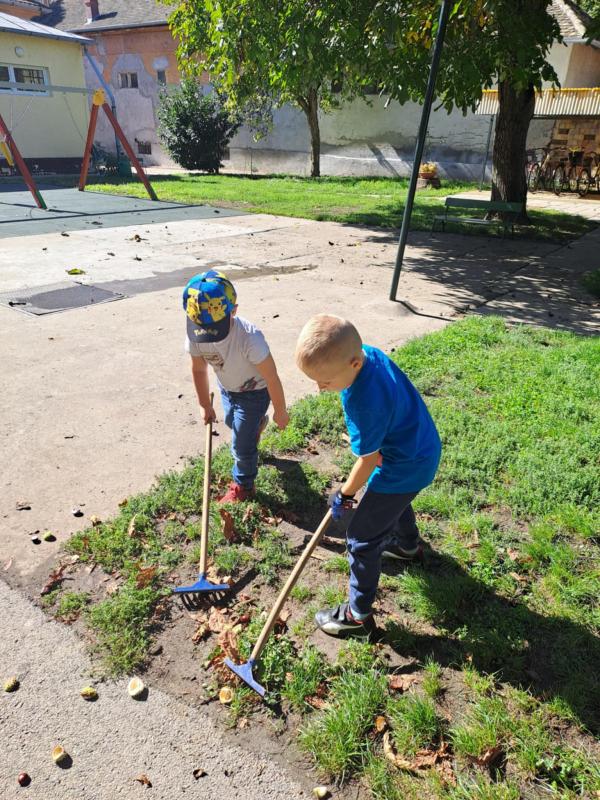 Idén csodálatos gesztenye-, és diótermés ajándékozott meg bennünket. A gyerekek nagyon megörültek a lehullott gesztenyéknek és dióknak az óvoda udvarán. Sok-sok vödörnyi termést gyűjtöttek, amellyel szívesen játszottak. Az összegyűjtött gesztenyékkel számoltak, formákat rakosgattak, gyurmáztak és gurigáztak a gyerekek. A kifúrt gesztenyékből őszi ajtódíszt és gesztenyekukac-farmot is készítettek óvodásaink.