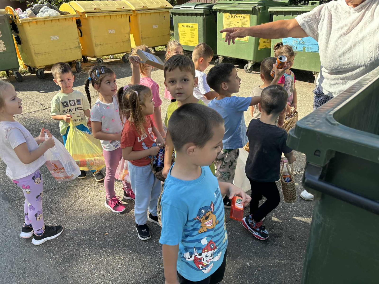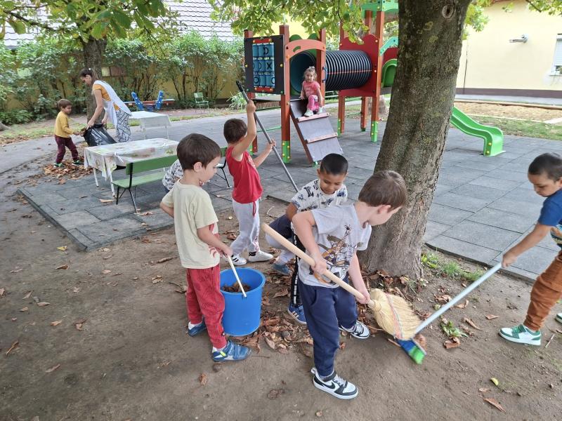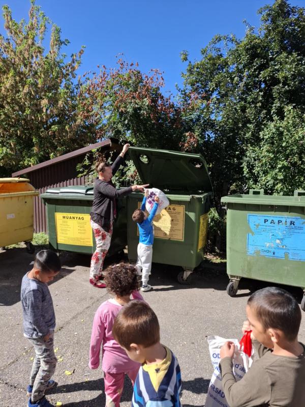 A takarítási világnap alkalmából sokat foglalkoztunk a szelektív hulladékgyűjtéssel és a környezetünk tisztántartásával. Közösen összegyűjtöttük az udvaron lehullott leveleket, kitakarítottuk a csoportszobákat és lemostuk a játékokat, babakonyhai edényeket. Az összegyűjtött hulladékot elvitték csoportjaink a lakótelepen található szelektív kukákba, illetve a Lidl élelmiszerbolt REpont automatájába.
