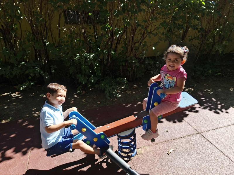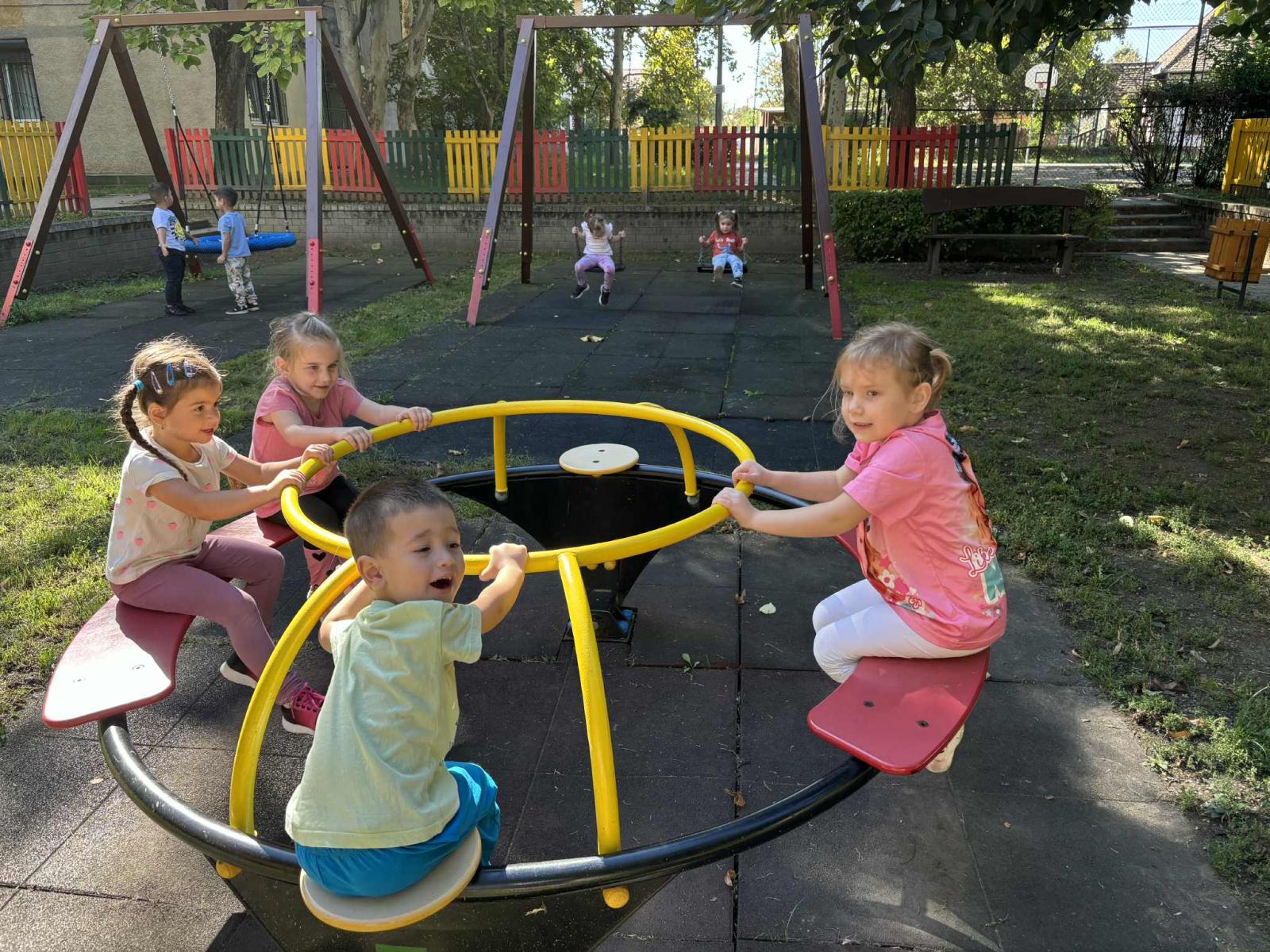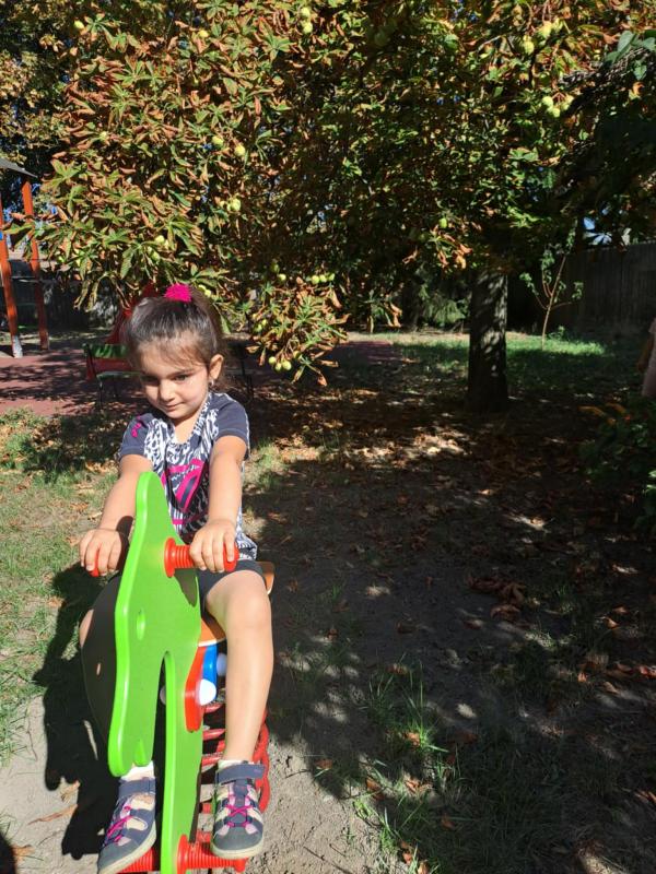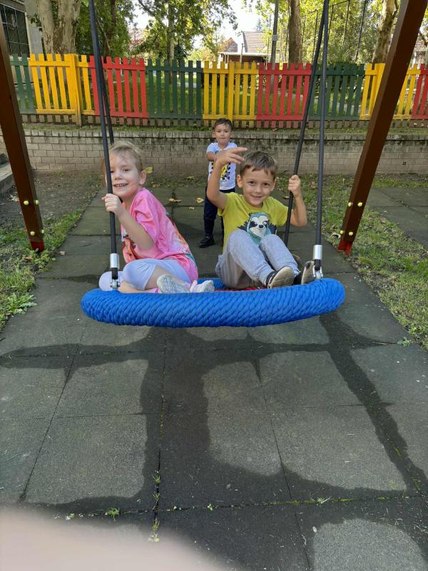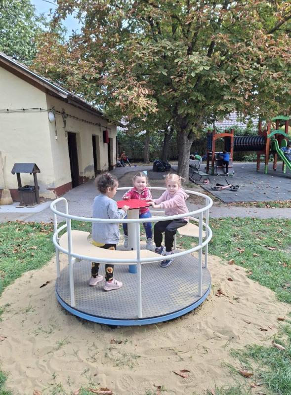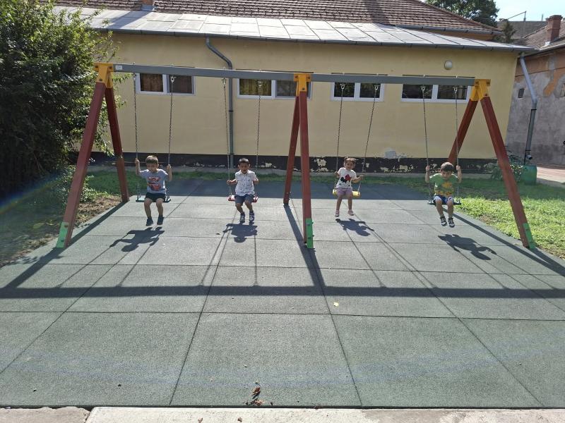 A jó időt kihasználva, sokat játszottunk és mozogtunk az udvaron. Az udvar új játékokkal csábította a gyermekeket. A nyári időszak alatt több új játékkal is gyarapodott óvodánk fenntartónknak köszönhetően. A gyermekek már alig várták, hogy birtokba vehessék az új hintákat, rugós-, és forgójátékokat. Természetesen ezeken kívül is még mindig nagyon népszerűek a futóbiciklik, rollerek és mászókák.