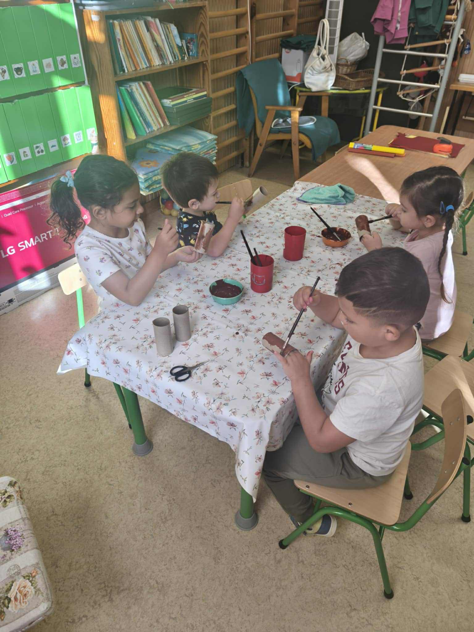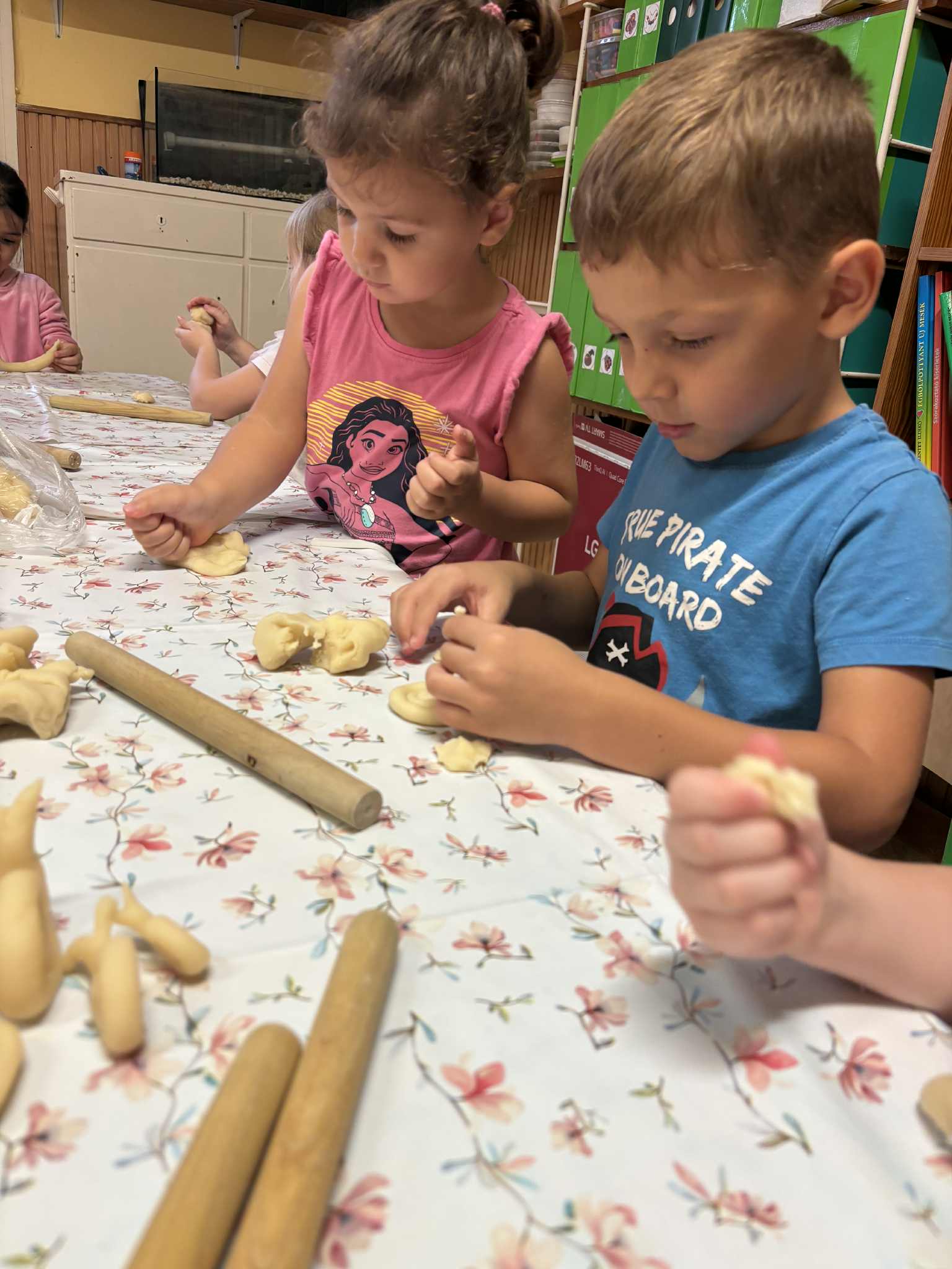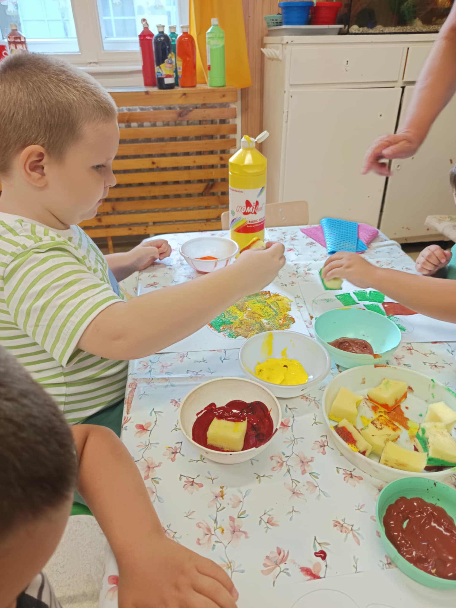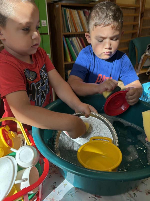 Esősebb időben azonban a csoportszobákban játszottunk. Előkerültek az asztali és a szőnyegi játékok, a gyermekek építettek, kisautóztak, színeztek, kirakóztak és a babakonyhában főzőcskéztek.