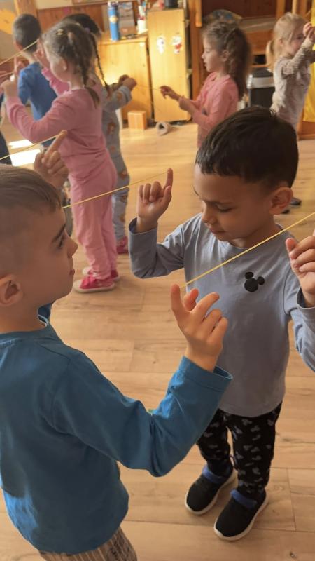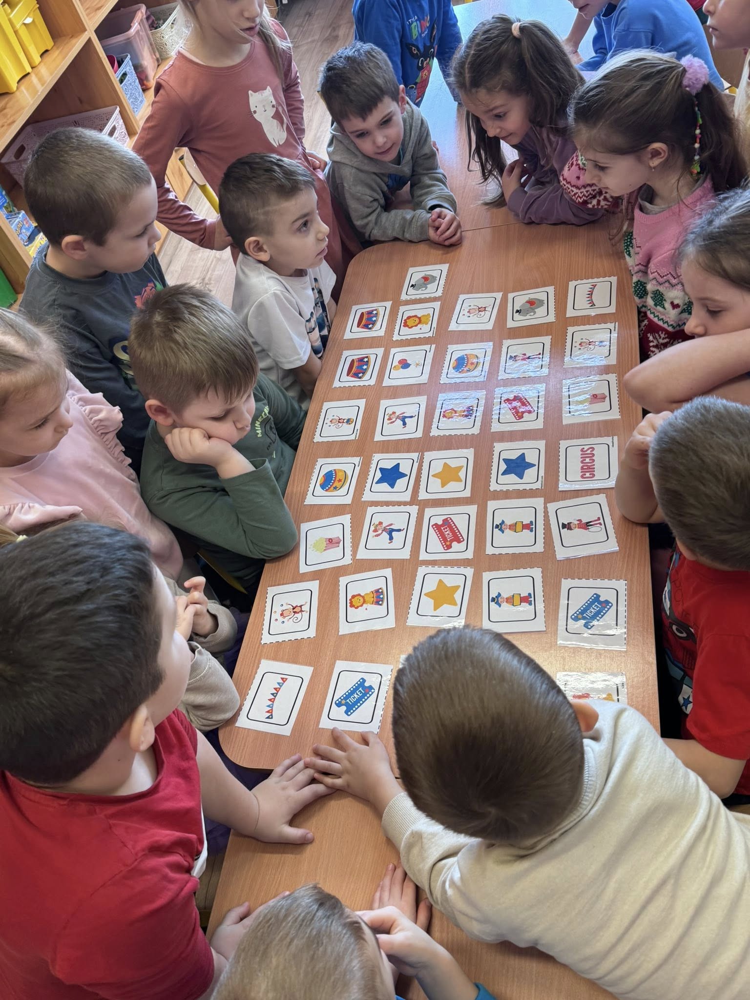Örömteli esemény volt az is, hogy a legnagyobbakat ismét meglátogatták az iskolából a tanító nénik és bácsi, akik játékos foglalkozással készültek számukra.