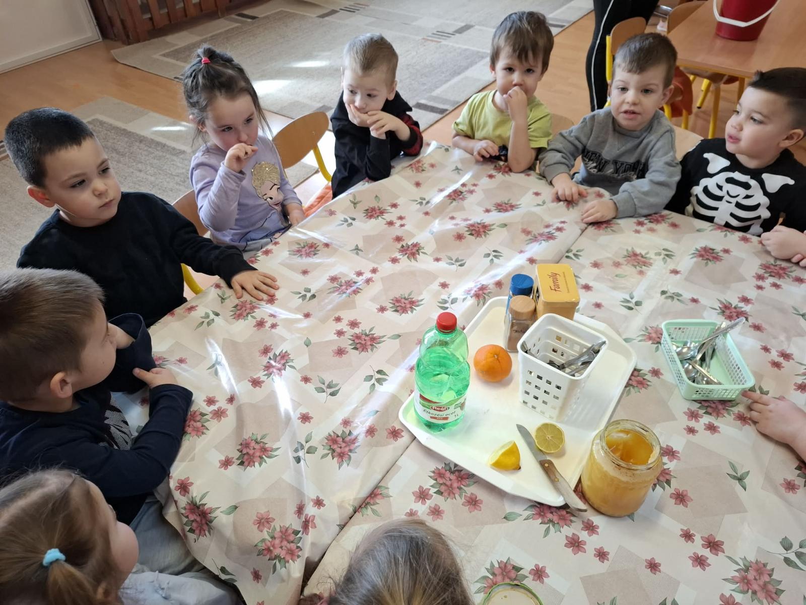 Az óvodában egészséghét is zajlott. A gyerekek beszélgettek a fogaik ápolásáról, közösen gyümölcssalátát készítettek, kóstoltak, beszélgettek az egészséges táplálkozásról. A testünk témája mindhárom csoportban előkerült, játékos formában ismerkedtek a gyerekek a test részeivel és működésével.