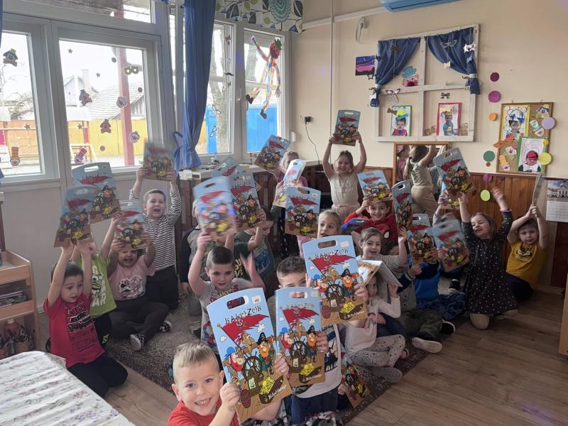 Szalay Mátyás könyvekkel és színezőkkel lepte meg az óvoda gyermekeit és a felnőtteket is, amit ezúton is nagyon köszönünk.
