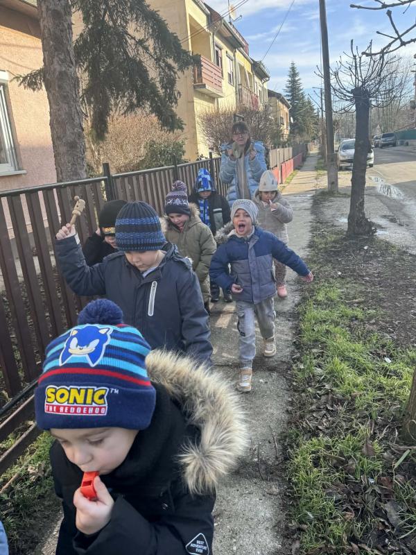 A Maci csoport a hagyományokhoz kapcsolódva busójárást és télkergetést tartott az óvoda körül, vidám zajkeltéssel búcsúztatták a telet. Ebben a csoportban foglalkoztak az állatok téli életével és az érzékszerveinkkel is, sok érdekes játékkal és tapasztalással.