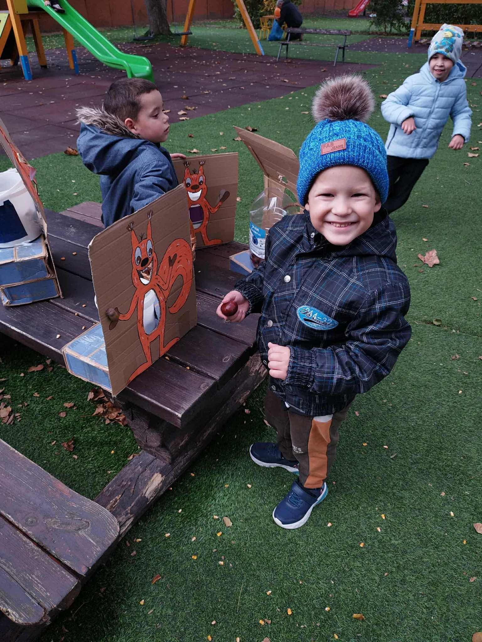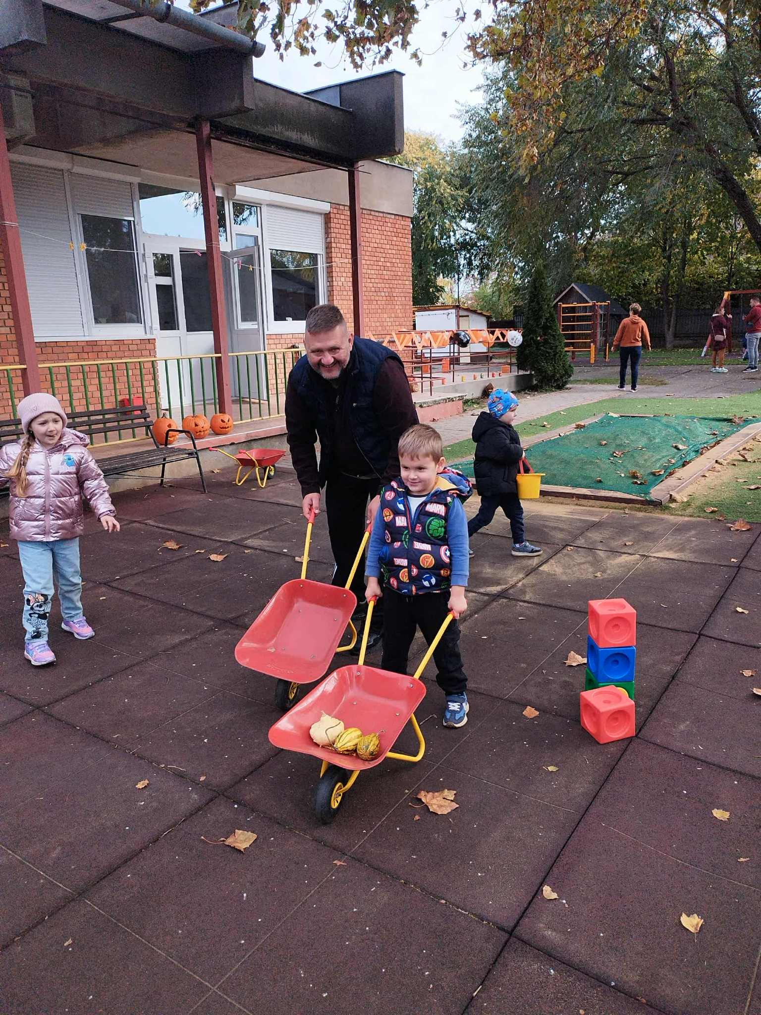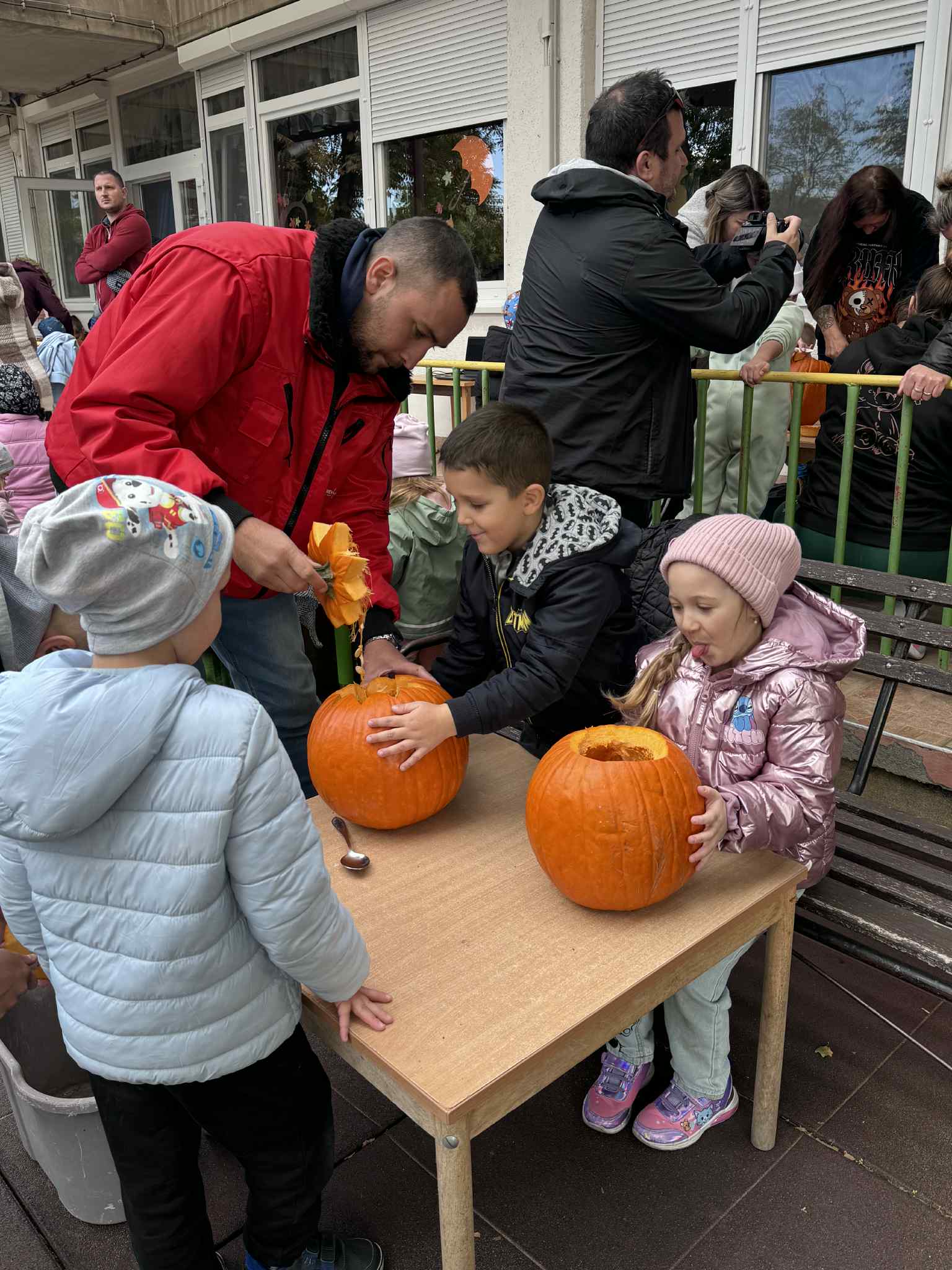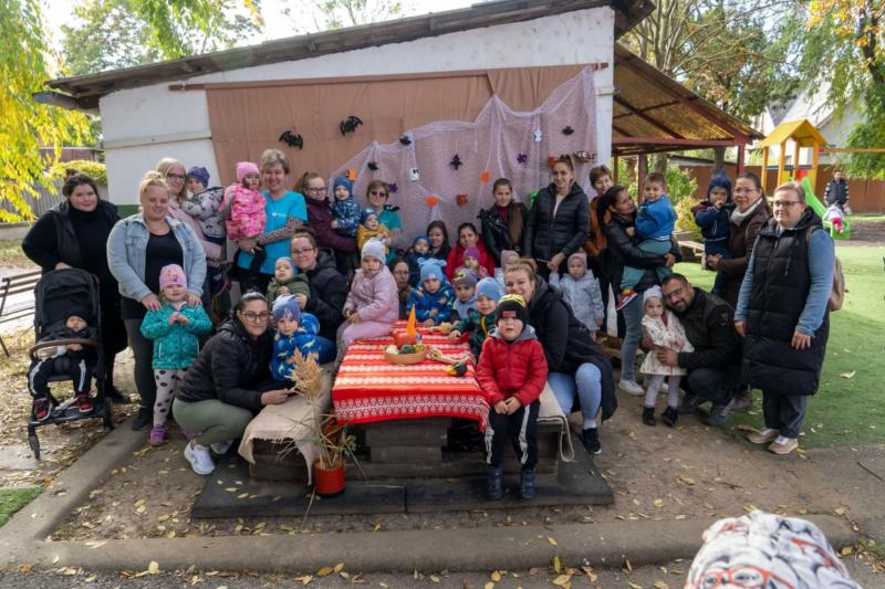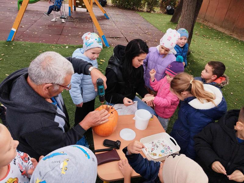 Október 4-én az állatok világnapjához kapcsolódva szerveződtek a tevékenységek több héten keresztül. Ismerkedtek a gyerekek a háziállatokkal, vízi és erdei állatokkal, távoli tájakon élő állatokkal. A Süni csoportban épült a tanya, az állatkert. November 16-án került sor az „Őszi kavalkád” elnevezésű, immár hagyománnyá vált rendezvényünkre. Kellemes, tartalmas délelőttöt tölthettünk együtt a szülőkkel. A legkisebbtől a legnagyobbig mindenki talált magának szórakozást. A kukoricamorzsolás, a csutkával célba dobás, mókusetetés mogyoróval, az óriáskirakó, a töktalicskázás. Mind-mind hívogatott kicsit és nagyot egyaránt. A tökfaragás és kiállítás is népszerű volt. Napokig gyönyörködtünk a kifaragott csodákban. Hálásak vagyunk a szülőknek a sok gyümölcsért, kukoricáért, őszi termésekért, amivel segítették a program létrejöttét. A Maci csoport családi gazdaságot látogatott, ahol nagy örömet okozott a gyerekeknek a színes állatvilág, ami eléjük tárult. Volt galamb, nyúl, malac, kutya, cica.