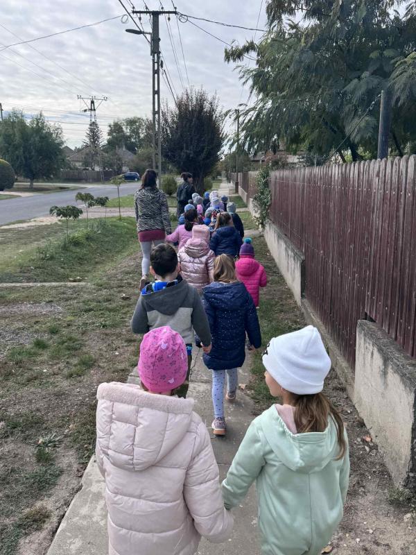 Szalma és csuhéfonó kiállítást tekintettek meg a gyerekek a művelődési házban, mely igen különleges látnivaló volt mindenki számára. Az őszi természet változásai is rengeteg látni és tennivalót tartogattak. Az udvar rendezése, gereblyézés, gesztenyegyűjtés folyamatos aktív időtöltést, és hasznos megtapasztalást adott a gyerekek számára. A séták során gyűjtött termések felhasználásra kerültek a vizuális tevékenységek alkalmával.