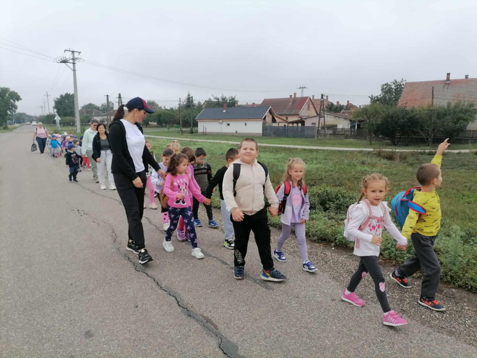 Egy szép őszi napon gyalogtúrára indultunk a határba. A friss levegő, a természet közelsége és a közös barangolás igazi feltöltődést jelentett mindenkinek. A gyerekek lelkesen gyűjtötték az őszi terméseket, leveleket, közben megfigyeltük az évszak változásait is. Az út során sokat beszélgettünk, énekeltünk, és persze megpihentünk enni-inni, csemegézni. A túra nemcsak a mozgás örömét adta, hanem az együtt töltött idő élményét is