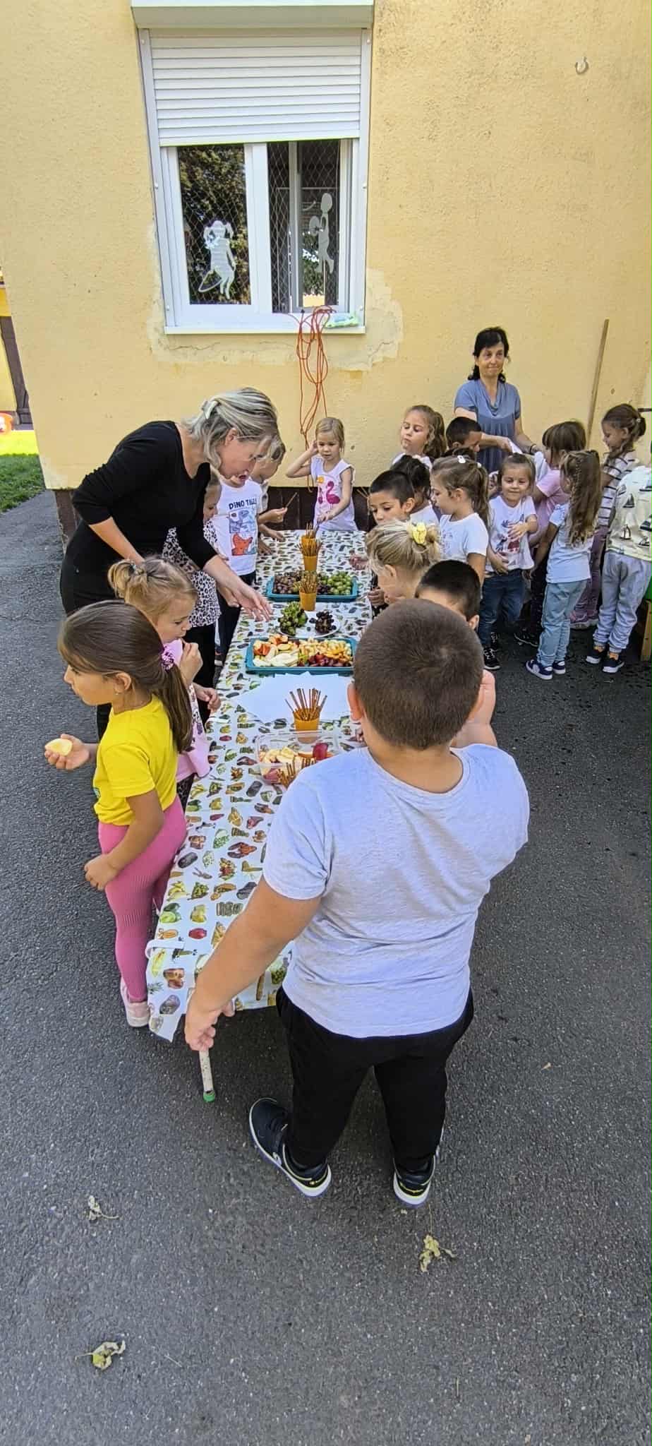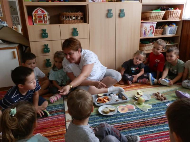 Szeptemberben megtartottuk a hagyományos gyümölcshetünket, amely során az egészséges táplálkozás fontosságára hívtuk fel a figyelmet. A gyümölcsnapon vidám vetélkedők, játékos feladatok és természetesen sok-sok finom gyümölcs várta a gyerekeket. A nap fénypontja az óvoda dolgozóinak meglepetés-előadása volt – nagy sikerrel mutattuk be a jól ismert Répa mesét, melyen a gyerekek csillogó szeme, és hangos kacagása jelezte: igazán jól sikerült!