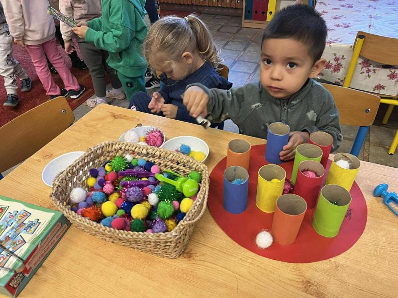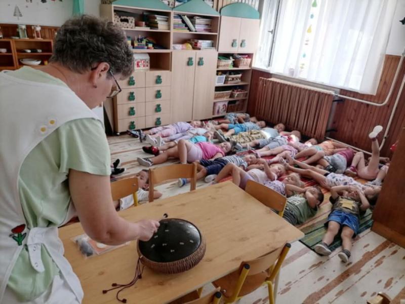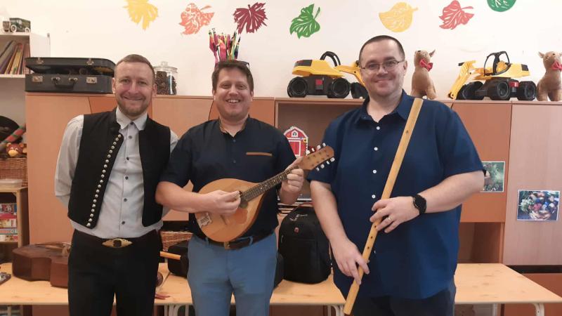 Egyik nap különleges vendégeket köszönthettünk: népi hangszerbemutatóval leptük meg a gyerekeket, ahol többek között a duda, a citera és a doromb is megszólalt. Vendégeink a háromtagú Na-Ko-Ma formáció volt. A gyerekek ámulva hallgatták a furulya, a citera, a doromb és a tekerőlant hangját, és sokan először láttak ilyen hangszereket. A bemutató nemcsak zenei élményt adott, hanem kultúránk hagyományainak megőrzésére is nevelt. A hangszeresek rövid történetekkel, játékos kérdésekkel vonták be a gyerekeket, akik lelkesen válaszoltak és még együtt is énekeltek egy-egy ismert népdalt, gyerekdalt. A program célja az volt, hogy már egészen kicsi korban megszerettessük a gyerekekkel a magyar népi kultúrát, és élményszerűen mutassuk meg nekik a hagyományos hangszerek szépségét. A bemutató egy közös táncházzal ért véget, felejthetetlen élményt adva ezzel gyerekeknek-felnőtteknek egyaránt.A zenészek látogatása a Boldog Gyermekekért Alapítványunk finanszírozásával jöhetett létre.