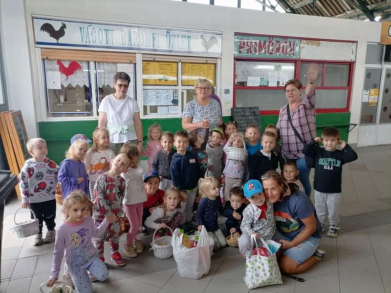 Szeptemberben óvodánk 2 csoportja is ellátogatott a helyi piacra. Ovisaink izgatottan nézegették a színes zöldségeket, gyümölcsöket, és kíváncsian kérdezgették, mi micsoda, amit ismertek, azokat pedig örömmel nevezték meg. A legnagyobb meglepetés akkor ért minket, amikor négy kedves árus is megajándékozott minket: kaptunk friss almát, körtét, szőlőt Törös Jenőtől, egy szatyornyi zöldséget Krokovecz Lászlótól, Vatai Dollitól édességet és üdítőt a vegyes boltból és egy üveg mézet a Varga méhészet jóvoltából is. A gyerekek boldogan fogadták az ajándékokat, mi pedig hálásan köszöntük meg a kedvességet – jó érzés volt megtapasztalni, milyen nyitottan és szeretetteljesen fogadták a kofák ovisainkat.